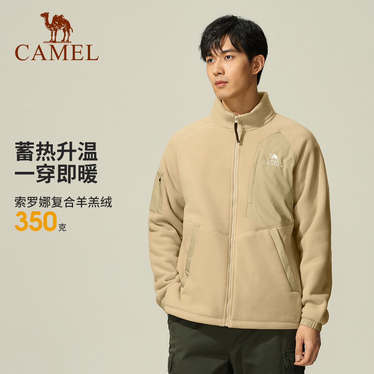 Camel Outdoor Splicing Grip Suede Jacket Man 2023 Winter new open flap Windproof Anti Splash Water Warm Jacket-Taobao