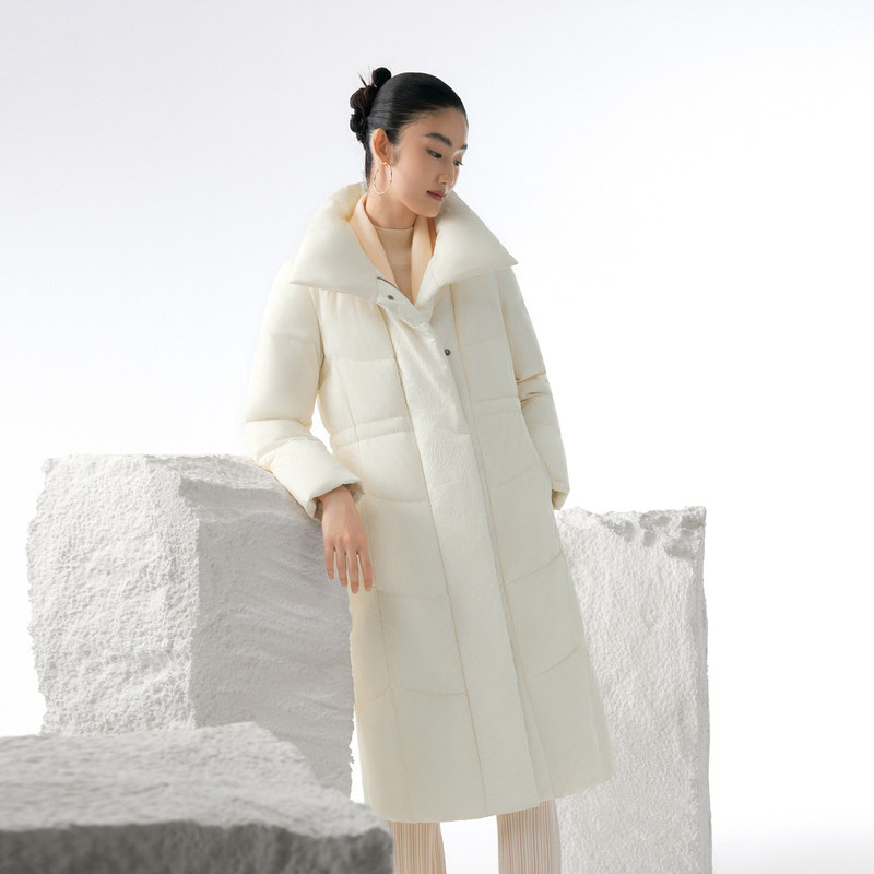 (Goose suede) Posden 23 Winter new women's long down jacket with big turnoff design senses waist and body jacket-Taobao