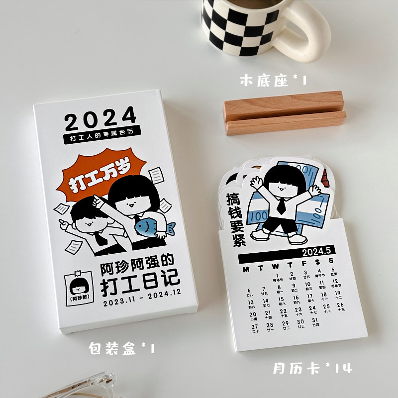 The small days don't turn out the 2024 Arjen Arstrong working calendar to beat the self-discipline wooden desktop desk calendar swing piece-Taobao