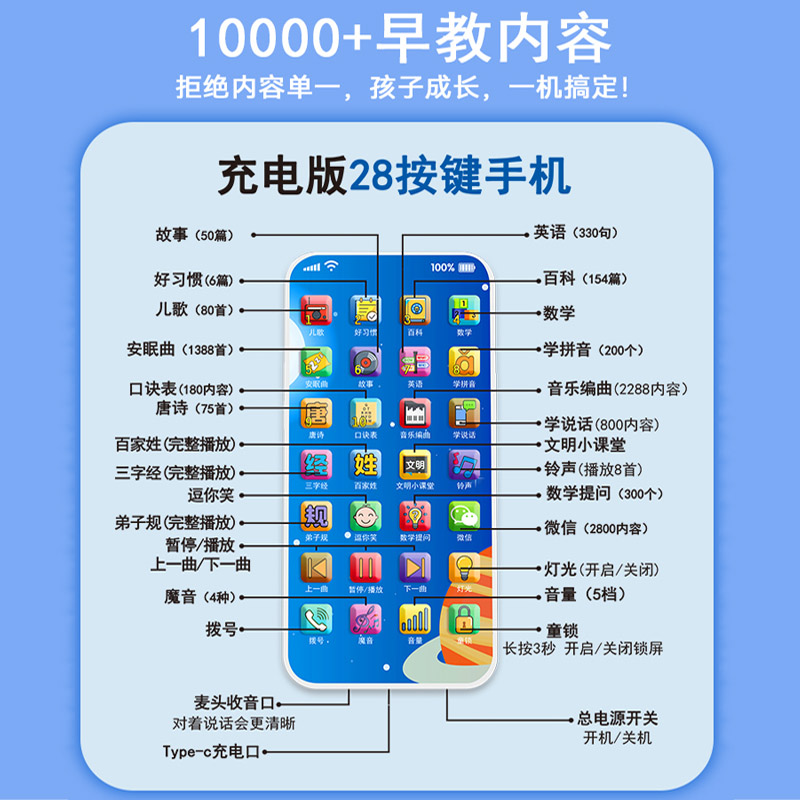 (Flagship Edition) 28 Key 10000 Knowledge points (with early teaching watches charging wire ropes for changing sound lights) (Flagship version) 19 keys 6800 Knowledge points (with early teaching watches)