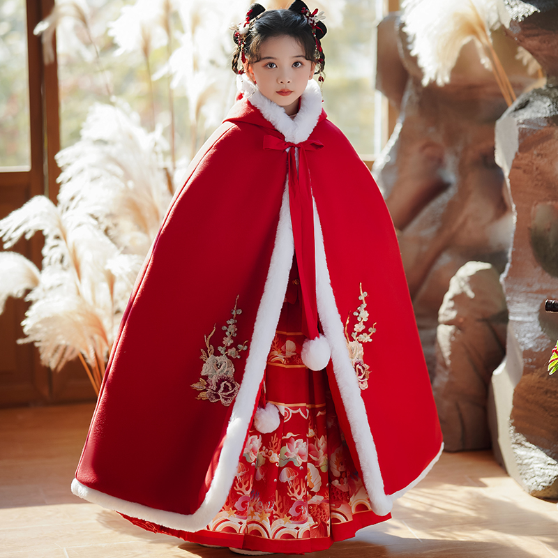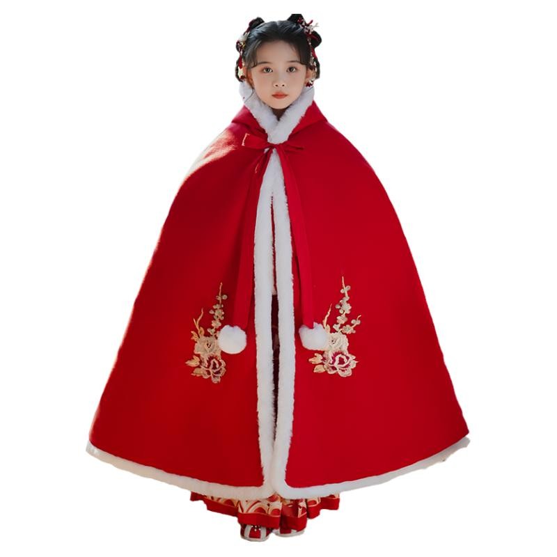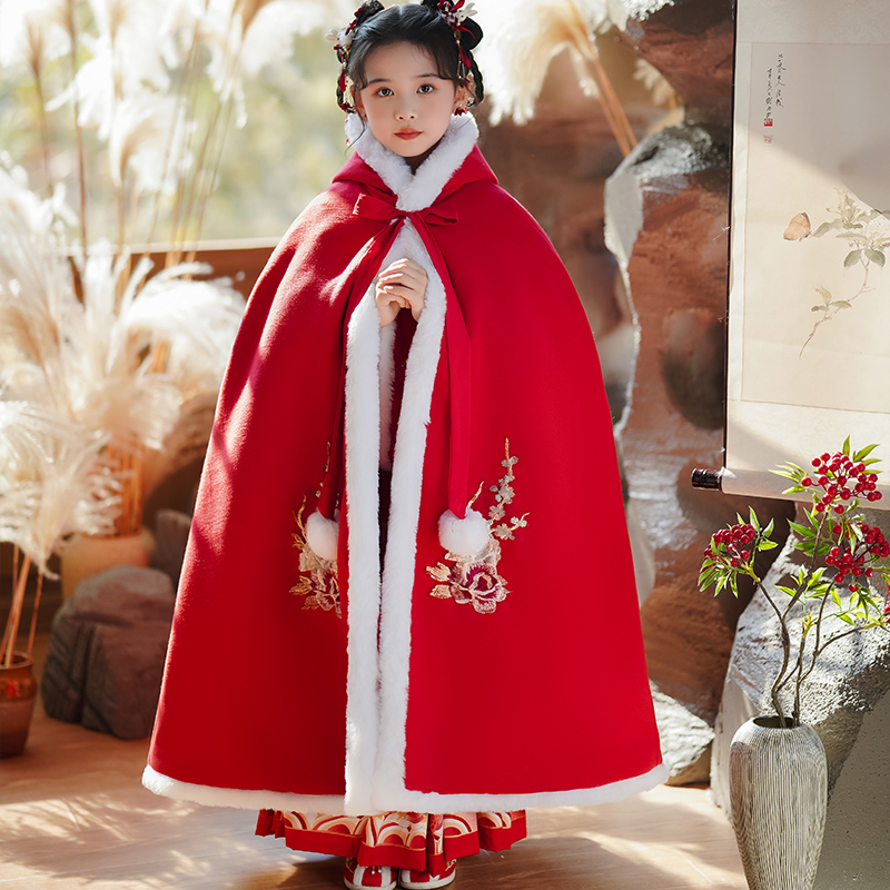 Girl's Han suit Beatty years to wear winter windproof plus suede thickened warm children red Chinese wind female treasure cloak-Taobao