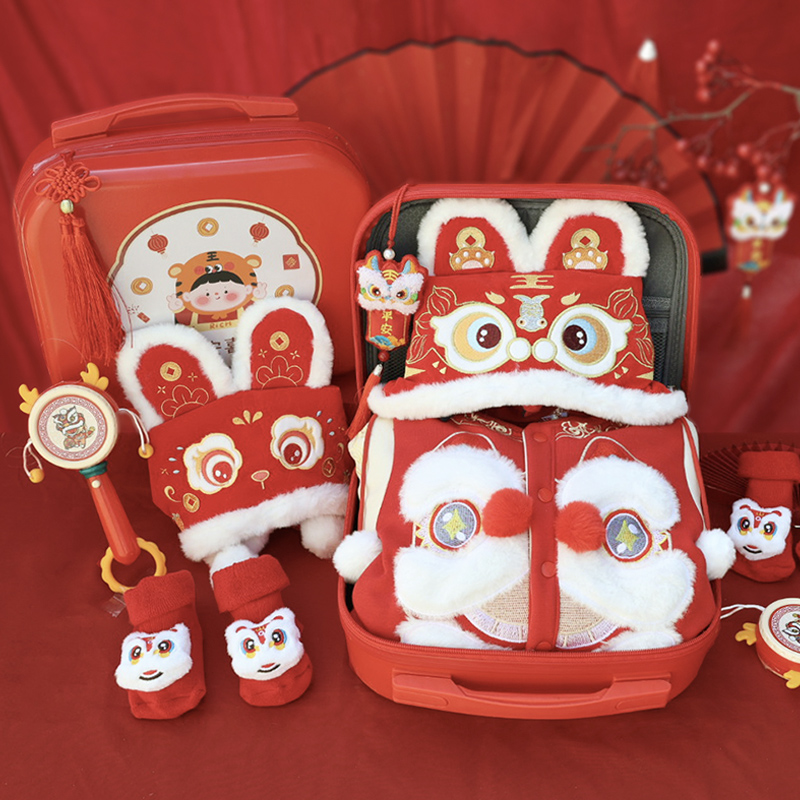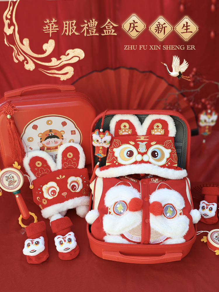 Newborn Son See Face Gift Box Baby Gift Full Moon Clothes Suit Mother & Baby Goods Full Year National Wind New Year Red-Taobao