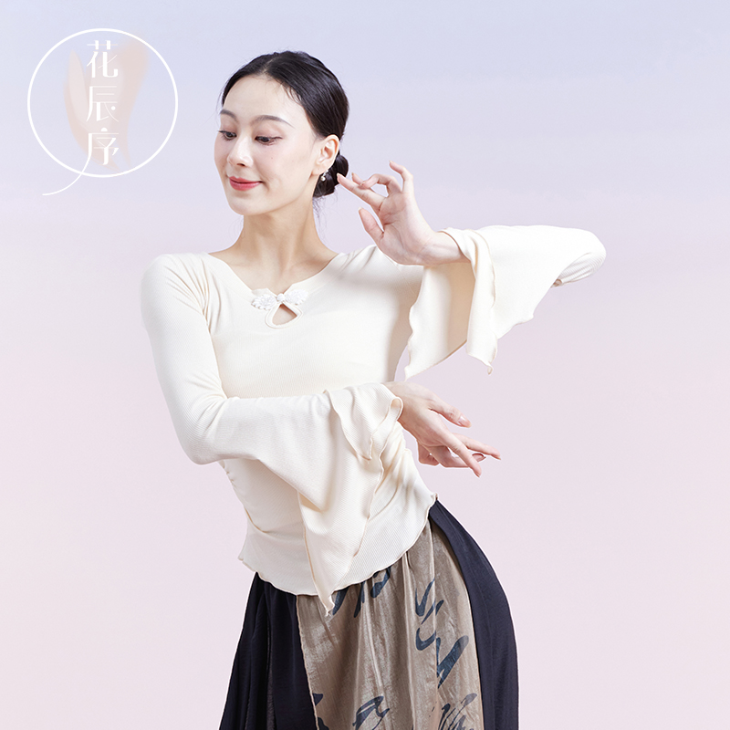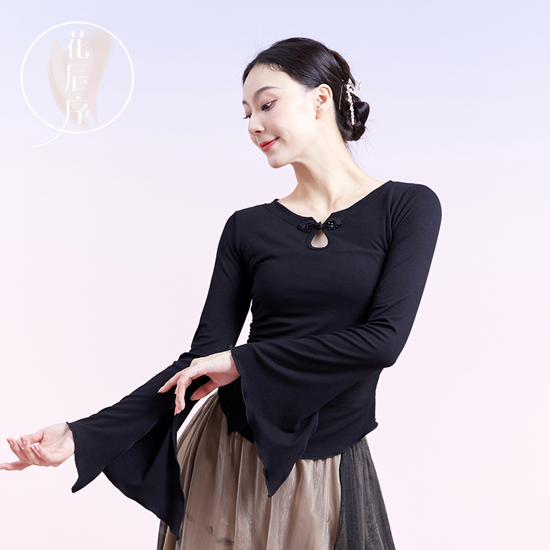 Floral motif Classical dance practice with long sleeves knit qipao collar to wear a jacket dance suit Chinese dance performance-Taobao