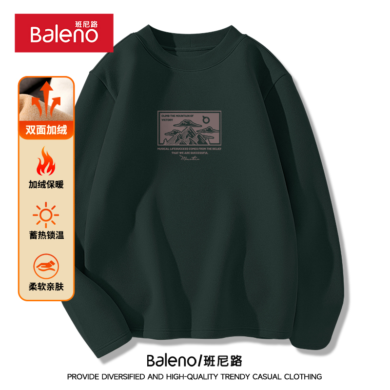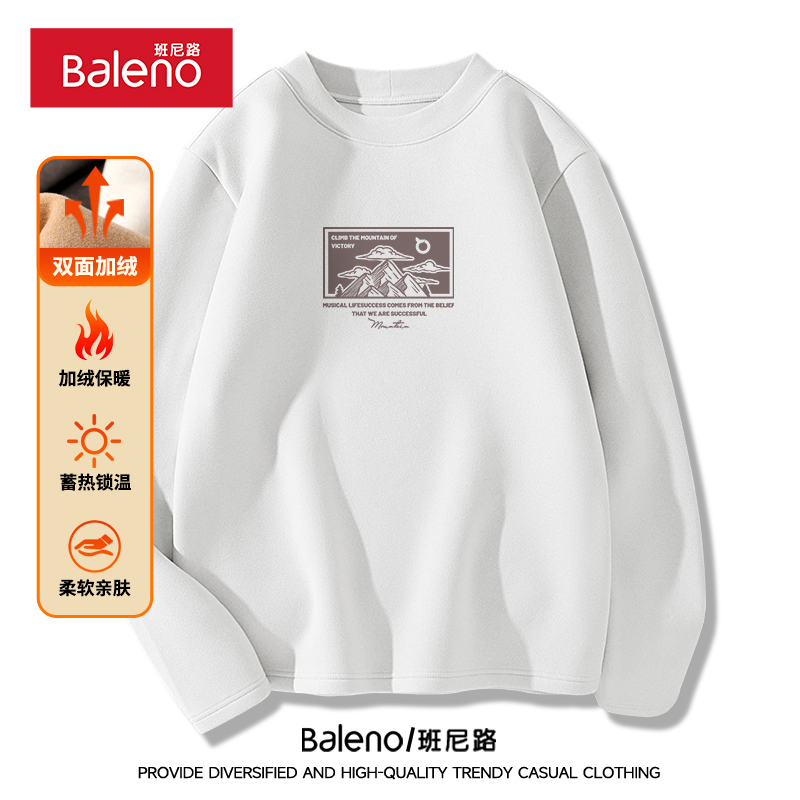 Baney road autumn winter beating undershirt male and half high neckline with jacket gapped thickened and warm double-sided suede long sleeve t-shirt tide-Taobao