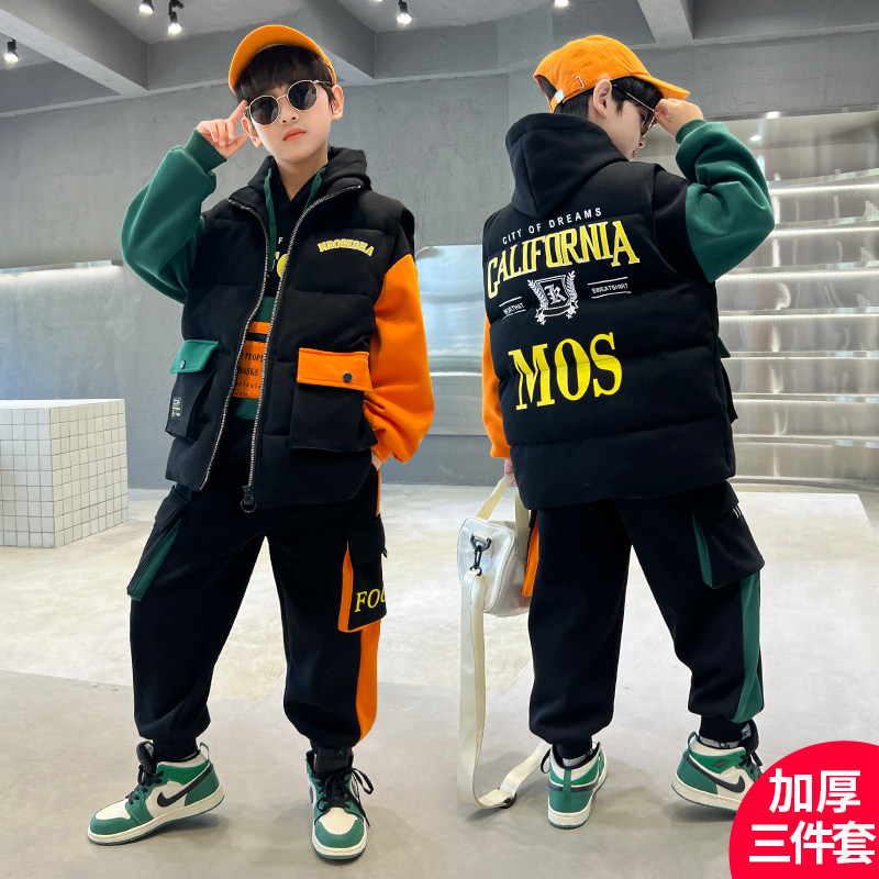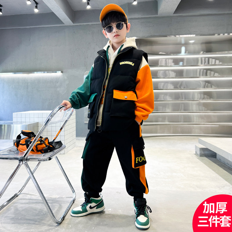 Boy's winter clothing suit 2023 new winter CUHK Children's boy Cavet thickened autumn and winter clothing Cool Shuai Chaotide-Taobao