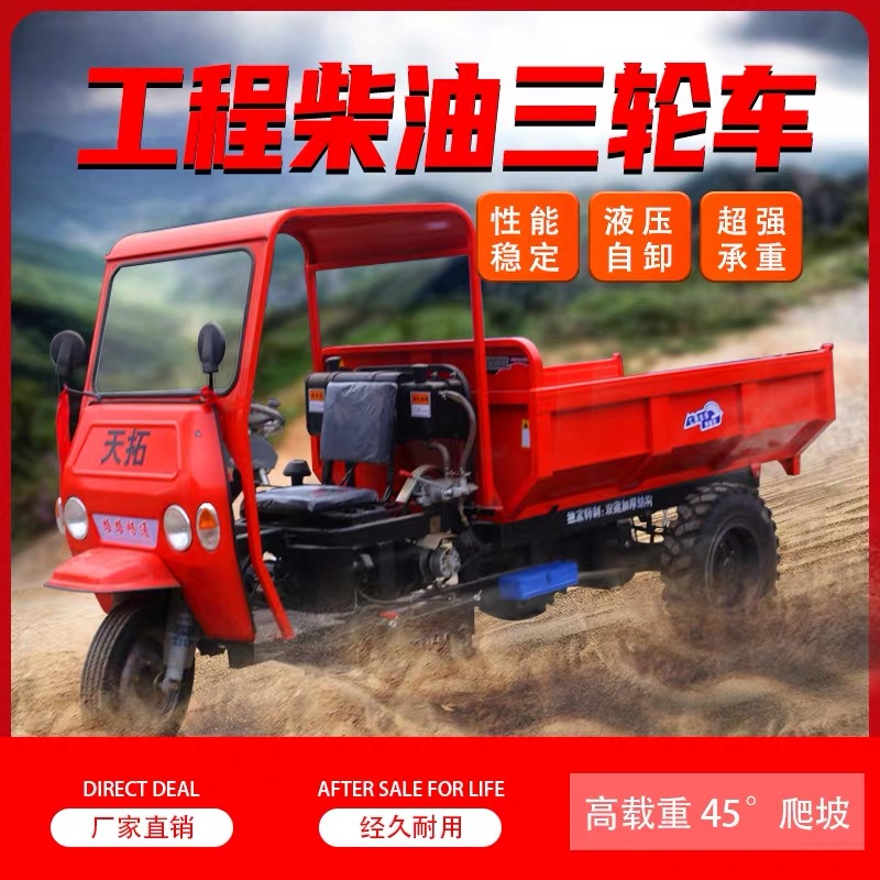 Agricultural Diesel Tricycle Construction Site Engineering Self-Unloading Turking King's Time Wind Five Signs Breeding Lagrain Climbing and Climbing Load-Taobao