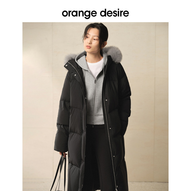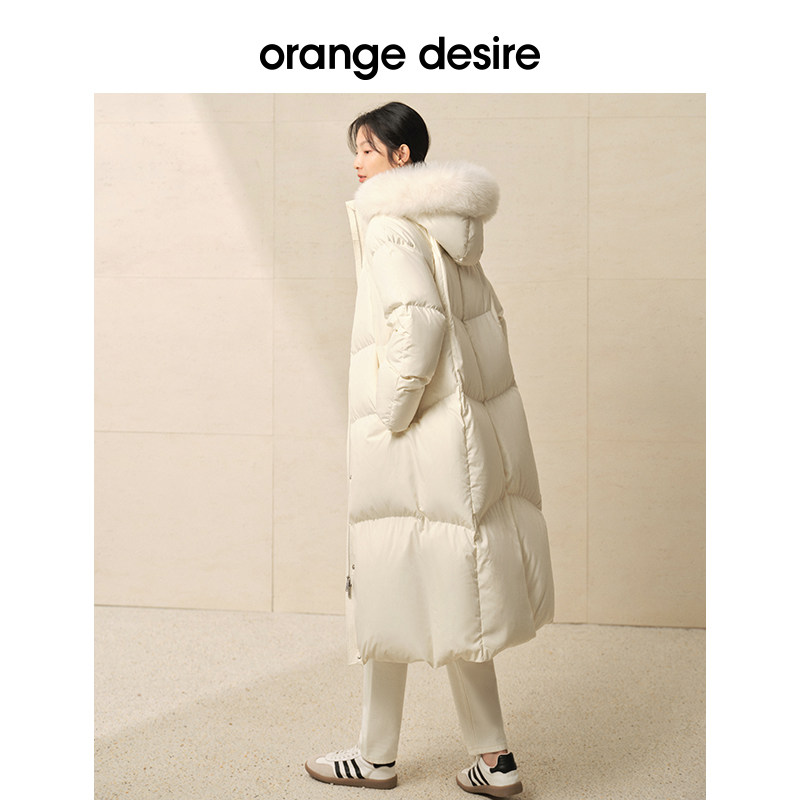orange despire gross collar Even cap Quilt White Duck Suede Long duvet clothes woman 2023 Winter new coat-Taobao