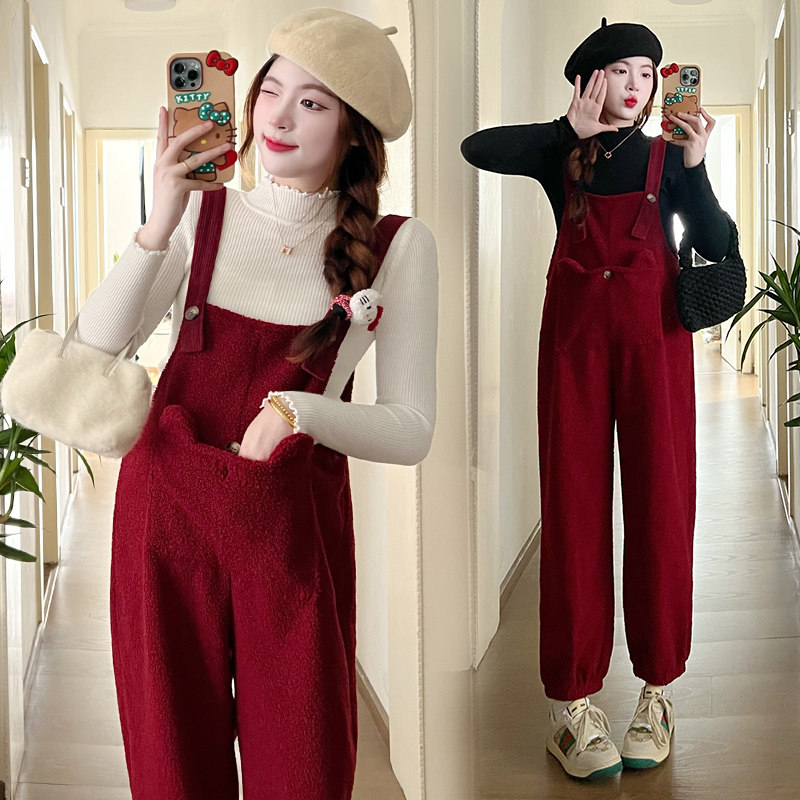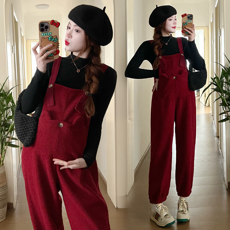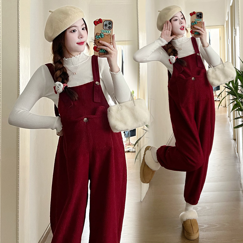 Pregnant woman back with pants Autumn Fashion woman 2024 new suit Fashion small large size sheep lamb two sets autumn winter-Taobao