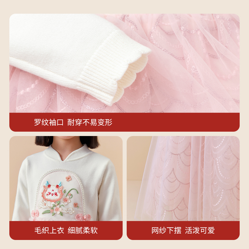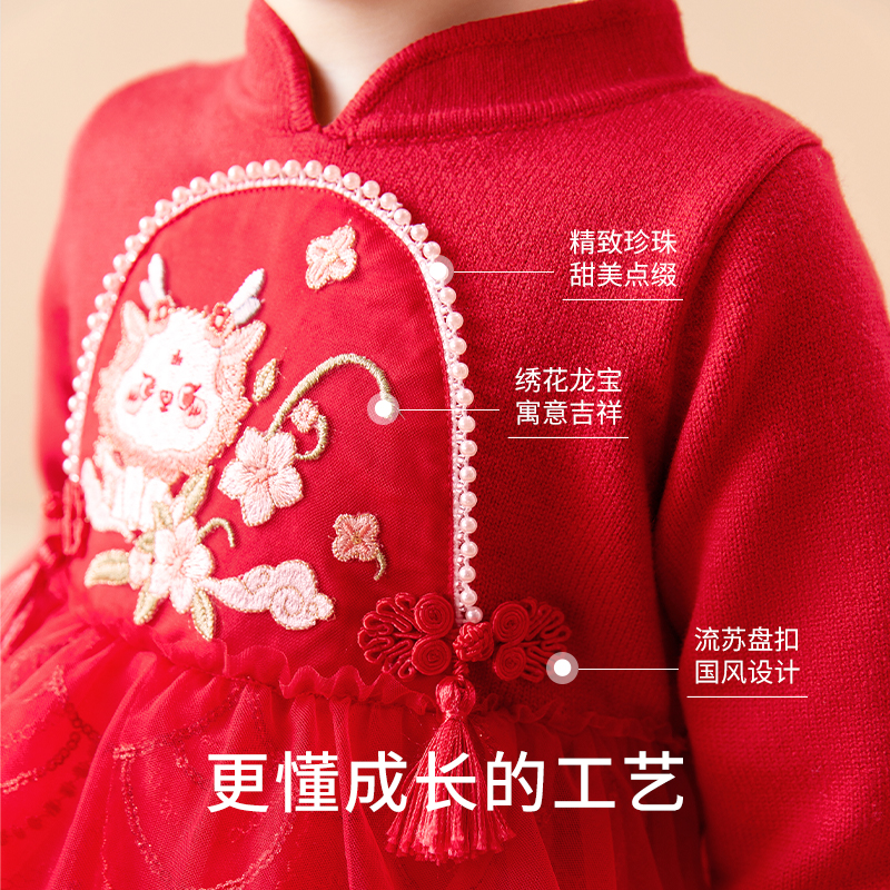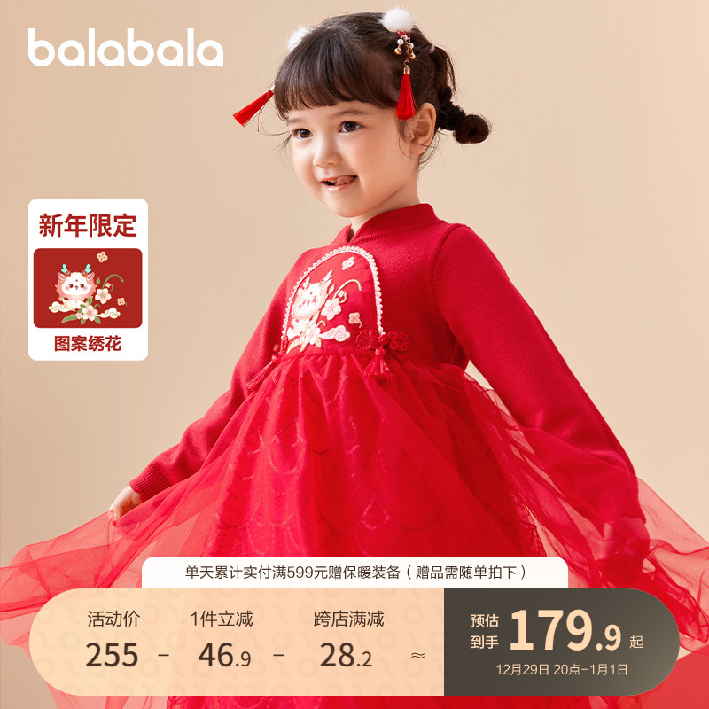 Bala Bala Children Dress Girl Dress Girl Dress 2024 New Chinese Children's Dress New Year Red National Princess Skirt Tide-Taobao