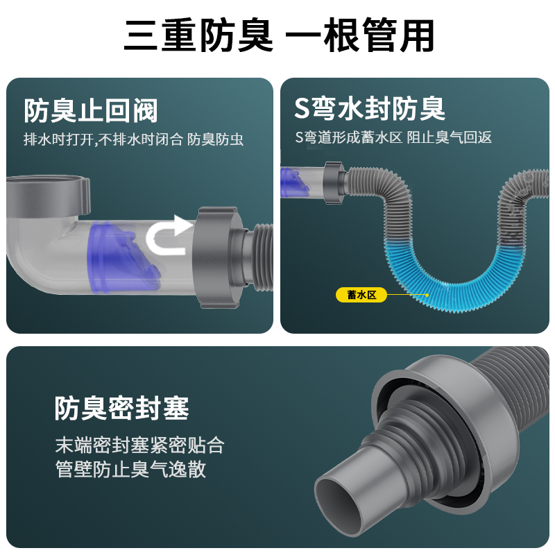 Wash Basin Sewer Deodorant Downpipe Ledge Basin Drain Hose Noodles Basin Sewer Drain Pipe fitted piece 2200-Taobao