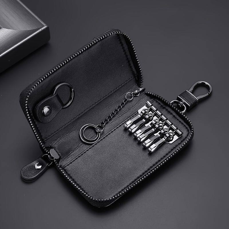 Men Business Key Bag Car Home Hanging Buckle Zipper Large Capacity Lock Spoon Bag Pu Multifunction Card Bag Three-in-one-Taobao