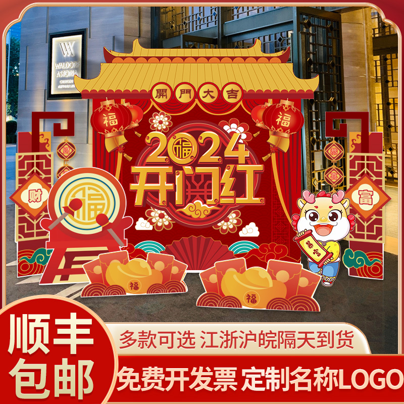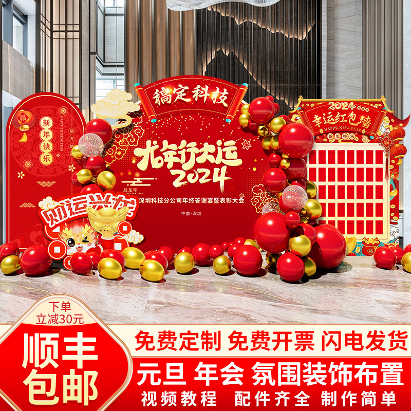 2024 Kaimen Red New Year decorations Long year Spring Festival Annual Meeting Live Placement Scene Beauty Chen KT Background Panthers Red Baume Wall-Taobao