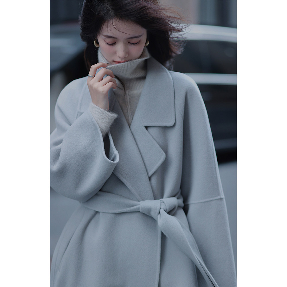 Plum cooked (Donghton 2 0) red coat bathrobe coat female winter advanced senses wool cashmere double face-Taobao