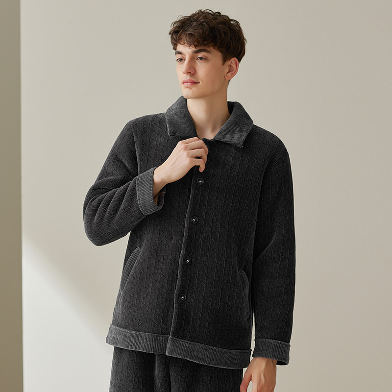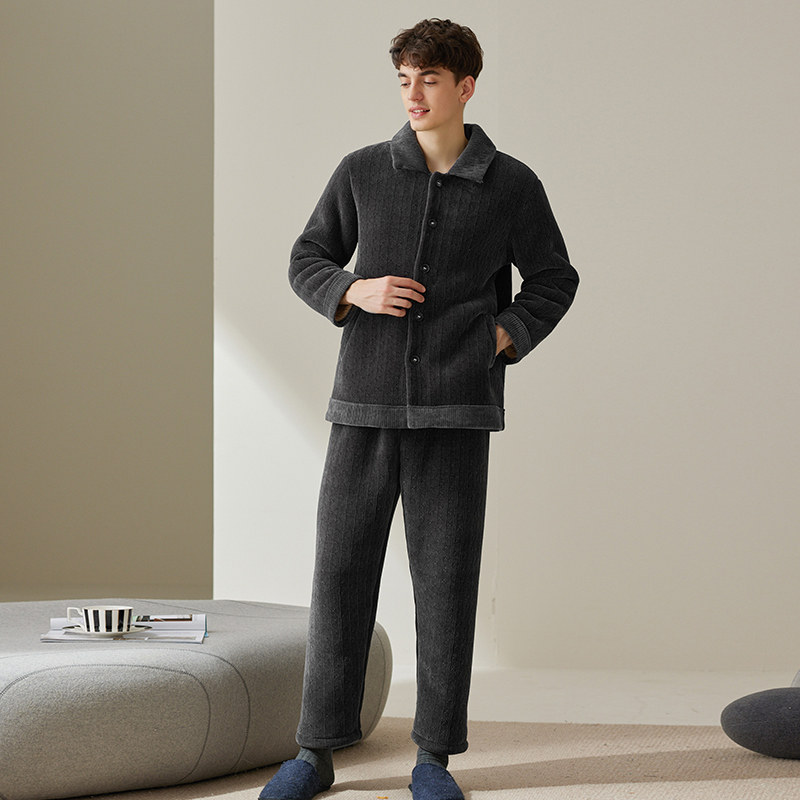 Fenteng Coral Suede Men Sleeping Clothes Autumn Winter Plus Suede Thickened Suit Flannel Winter Casual Increase Yard home clothes