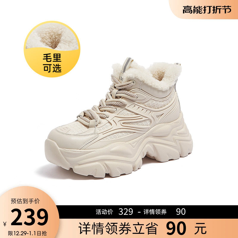 Camel Women Shoes 2023 Autumn Winter New Thick Bottom Old Daddy Shoes Women Heightening Thick Bottom Casual High Bunch Shoes Cotton Shoes-Taobao