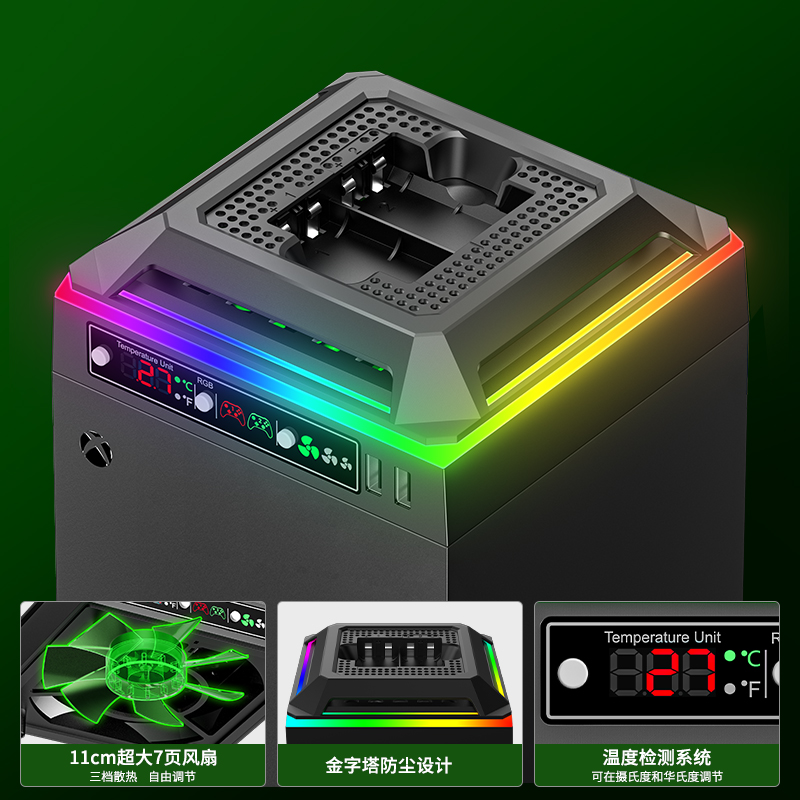 xbox Cooling fan series x host multifunction radiator dust-proof containing display RGB atmosphere light XSX accessories handle battery charge-Taobao