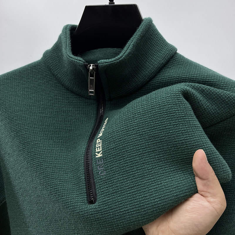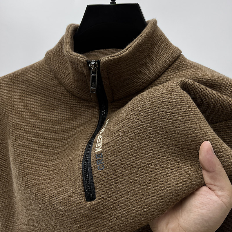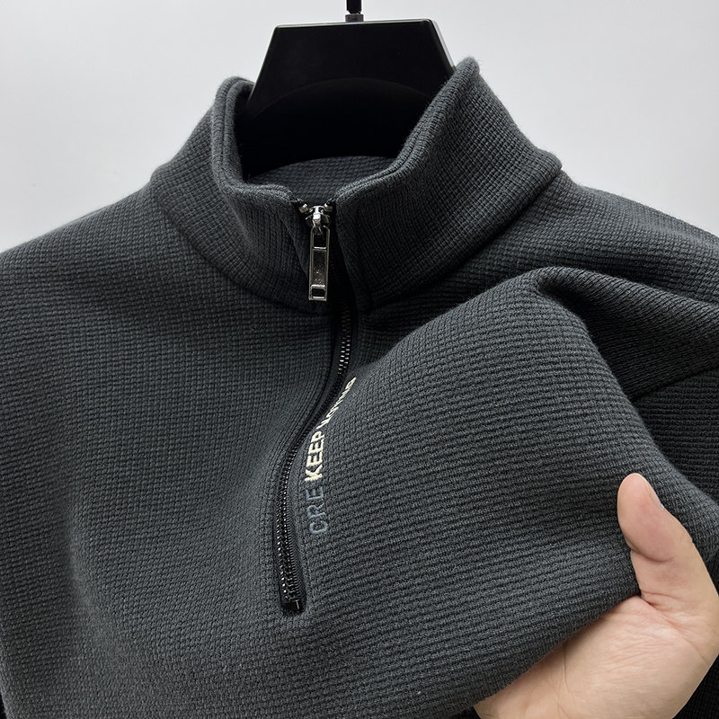 Half Zip Plus Suede Thickened Sweatshirt Male Winter Warm Casual T-Shirt Male Long Sleeve Collar Men's Clothing Undershirt Jacket-Taobao