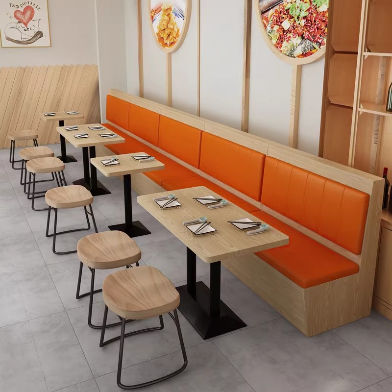 Solid Wood Stools Flour Noodle Restaurant Snack Burger Fast Food Restaurant Table and chairs Composition Spicy Hot Shop Restaurant Table Cassette Commercial-Taobao