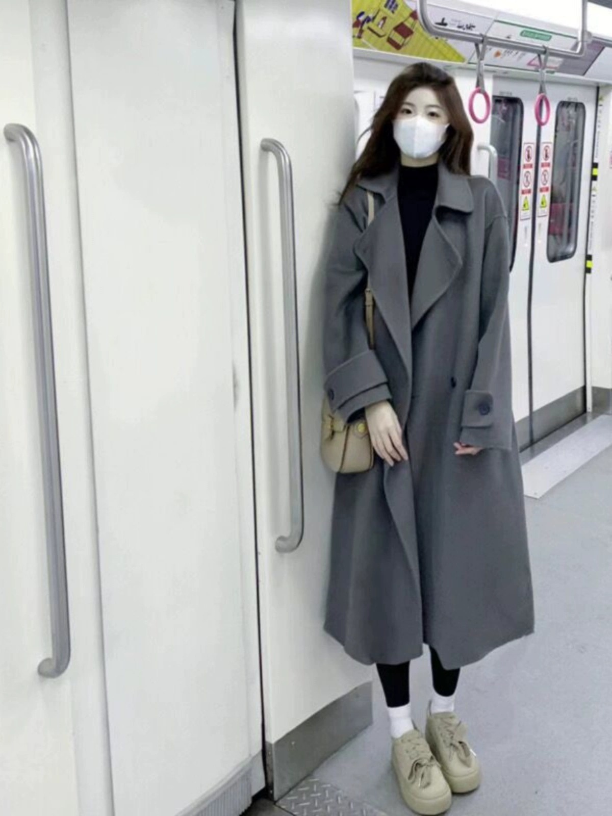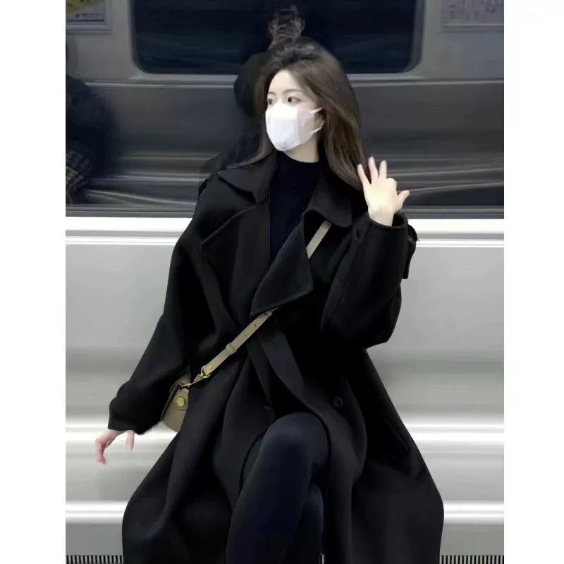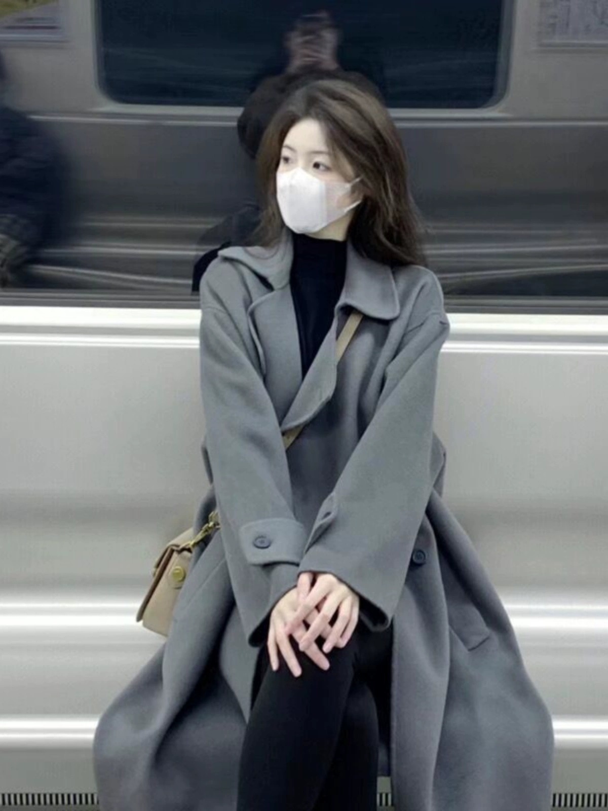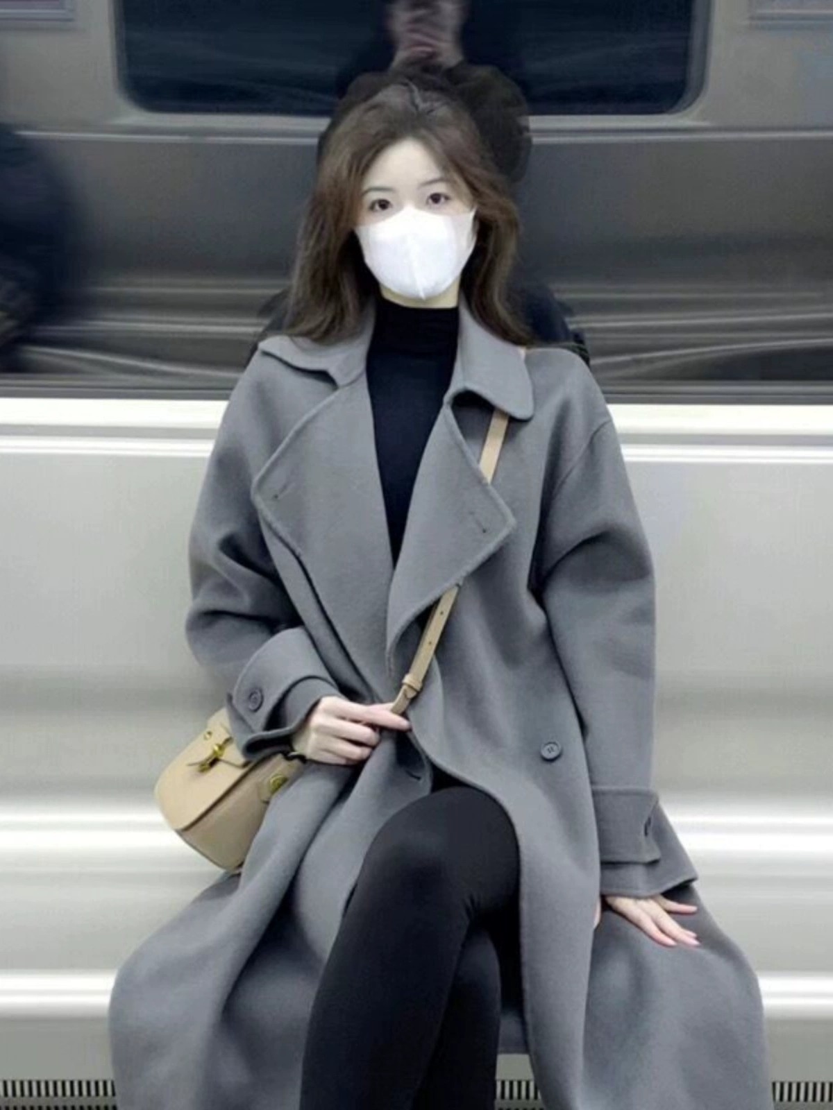 Double-sided cashmere subterfuge chainty windy dresses 2023 new autumn and winter small subsenior senses Mao jacket-Taobao