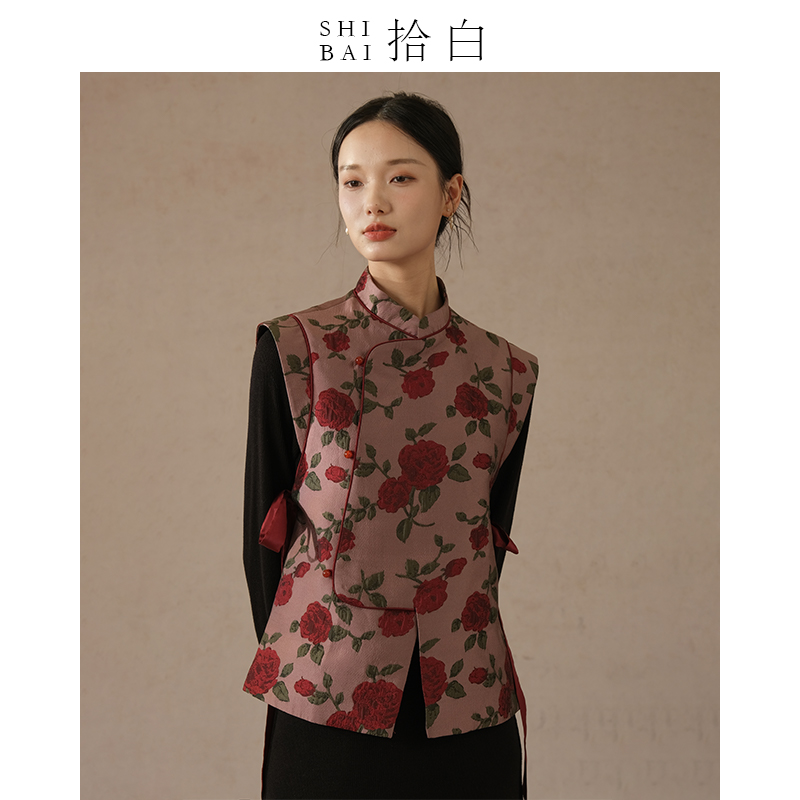 SHIBAI ten white new Chinese horse chia spring autumn original Chinese wind women's clothing improvement qipao style color loom jacquard blouses-Taobao