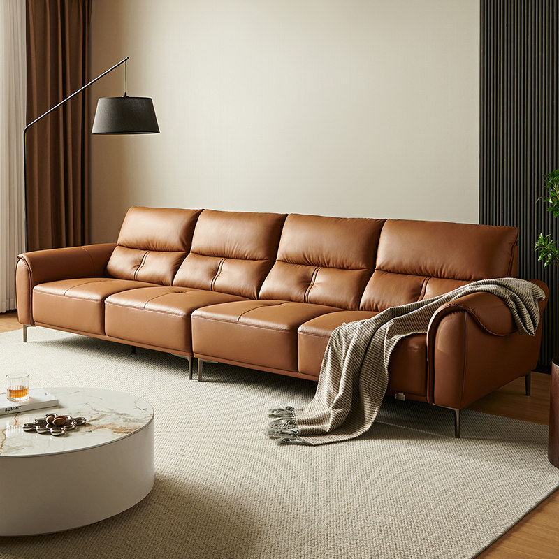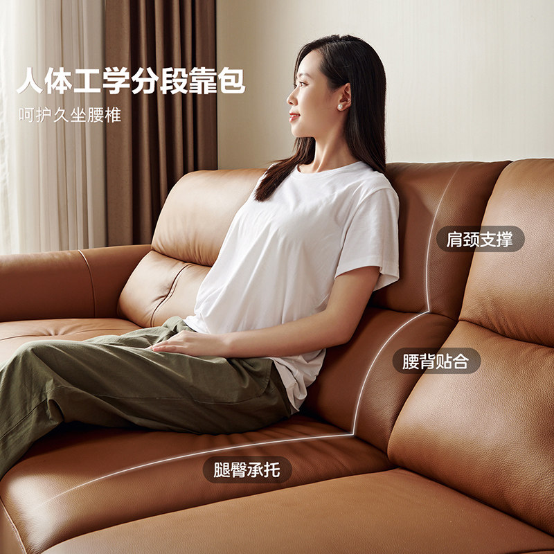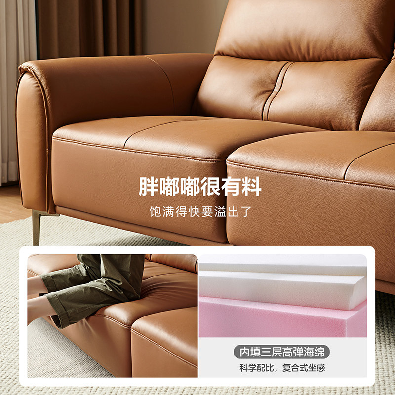 Full Friend Home Honey Orange Sofa Willy-style Minimalist Living-room Head Layer Cow Leather Straight Row Sofa Real Leather Sofa 112016-Taobao