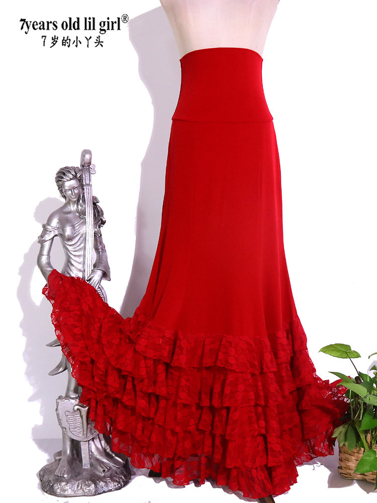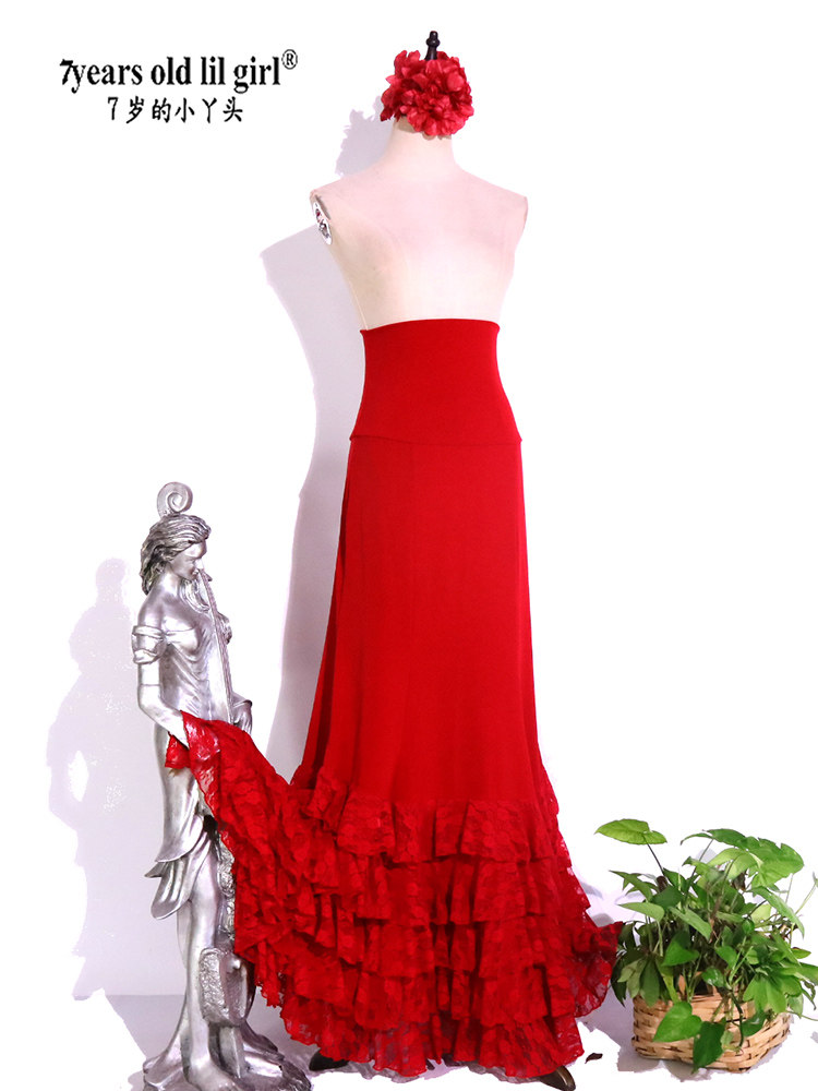 Dance suit hot pin Flamenco Flemento Spanish dance dress glutes hip five layers of lotus leaf side skirts red GZ11-Taobao