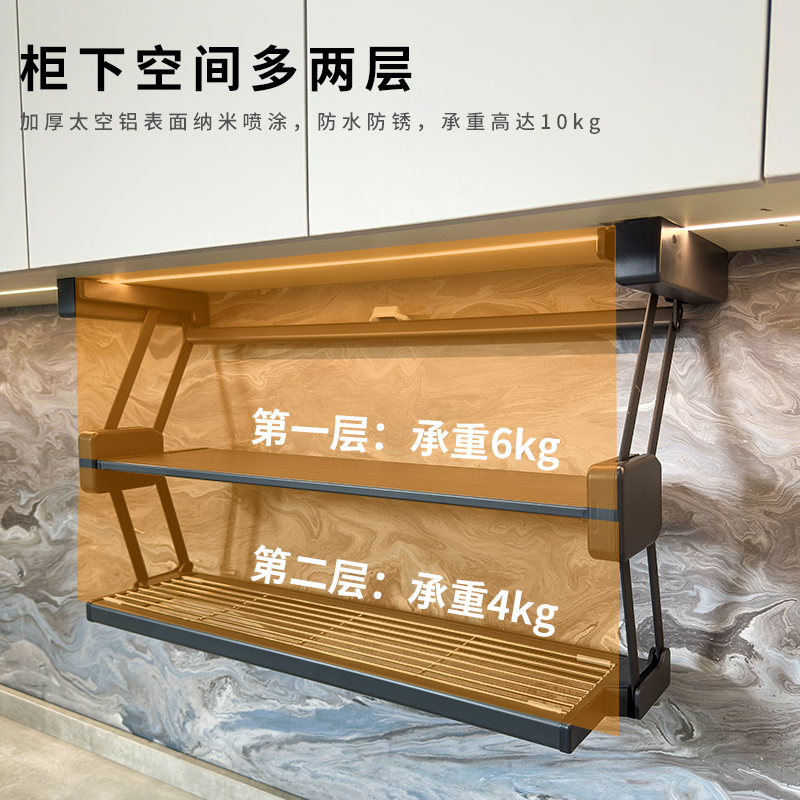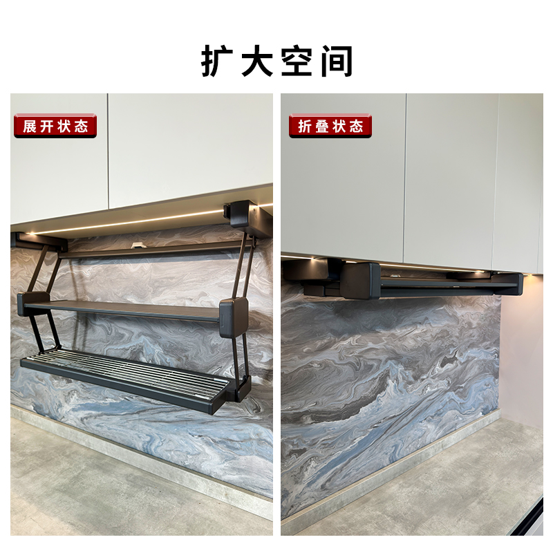 Kitchen Hanging Cabinet Folding Shelf Under-pull Double-layer lifting telescopic preparation of Vegetable Seasoning dishes Dish Storage Racks storage rack-Taobao