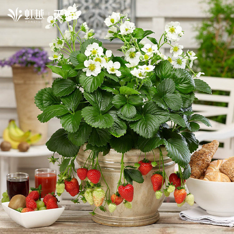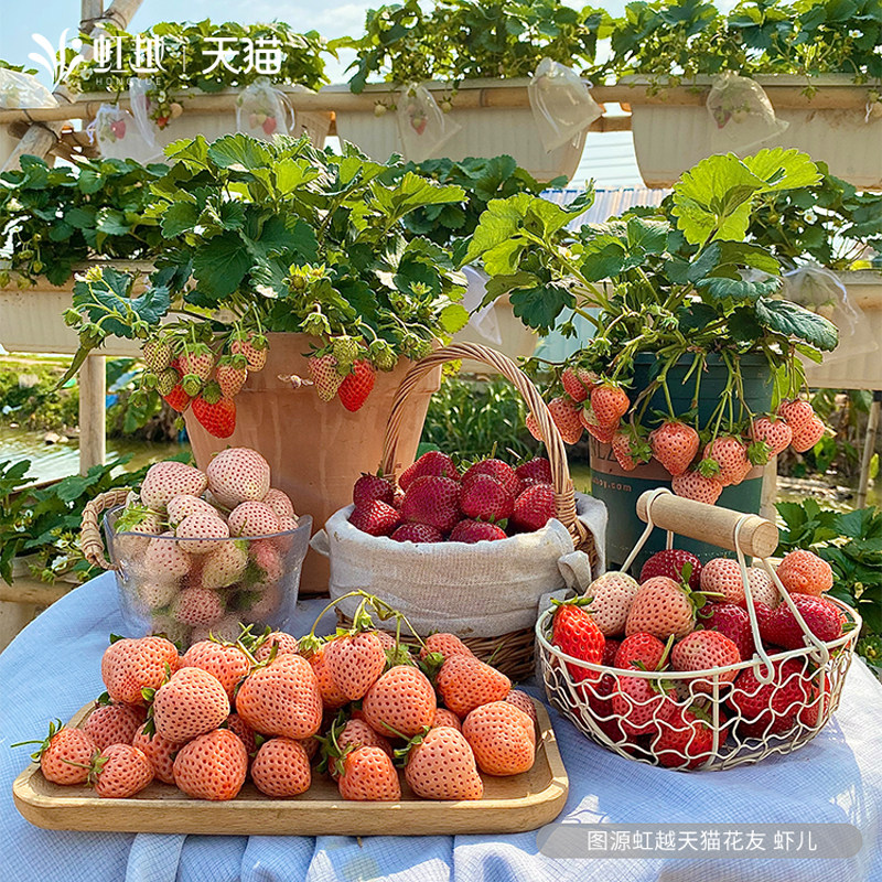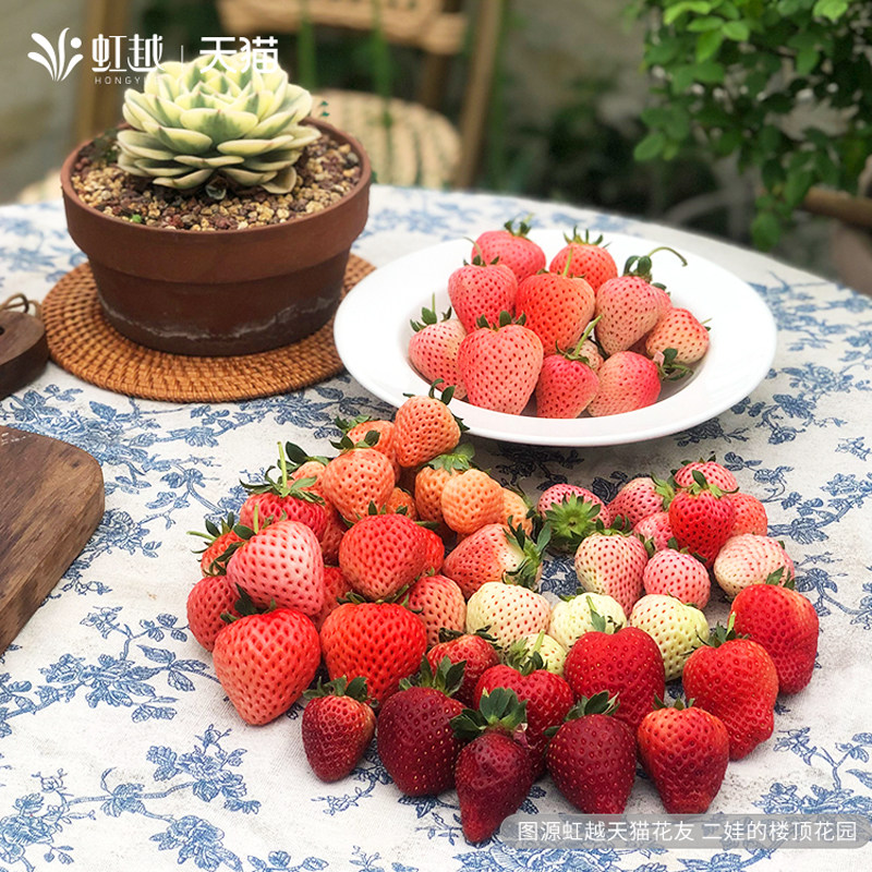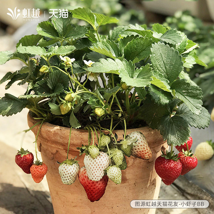 Spot iridescent strawberry Miao potted balcony window edge Four Seasons results Tree red Yen Zhangge Cream Strawberry Planting Miao-Taobao