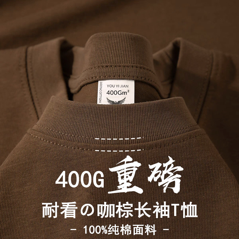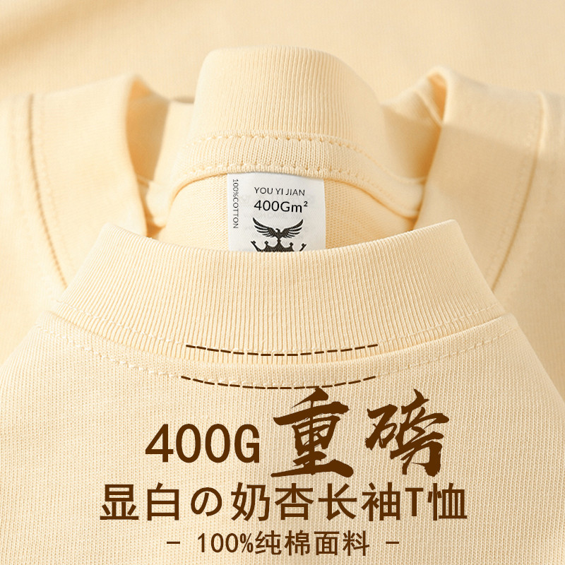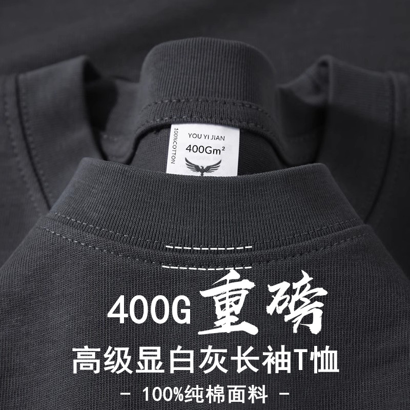 400G weight long sleeves T-shirt male spring autumn American pure cotton beating undershirt small neckline loose white sweatshirt woman-Taobao