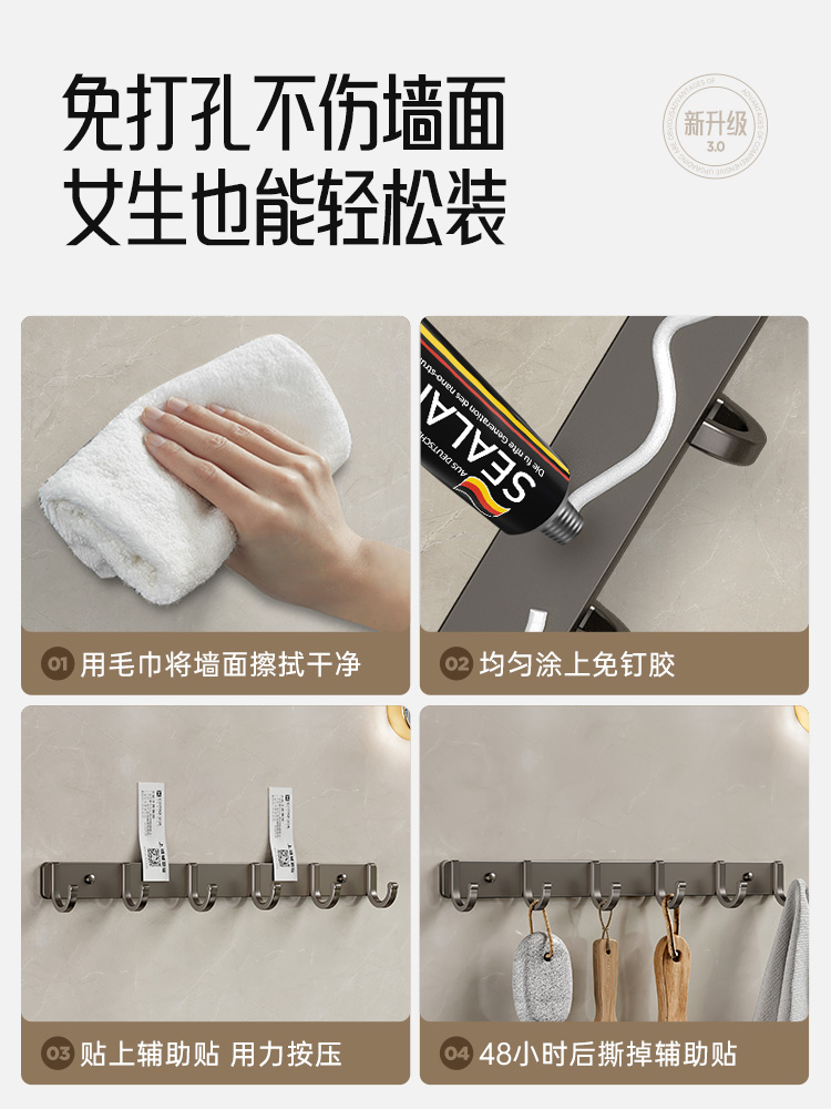 Door rear hook wall-hanging clothes hanger wall free from punching in kitchen bathroom without tractors to contain clothes rack god-Taobao