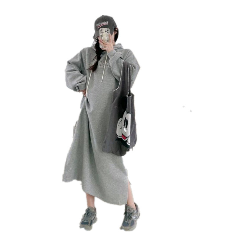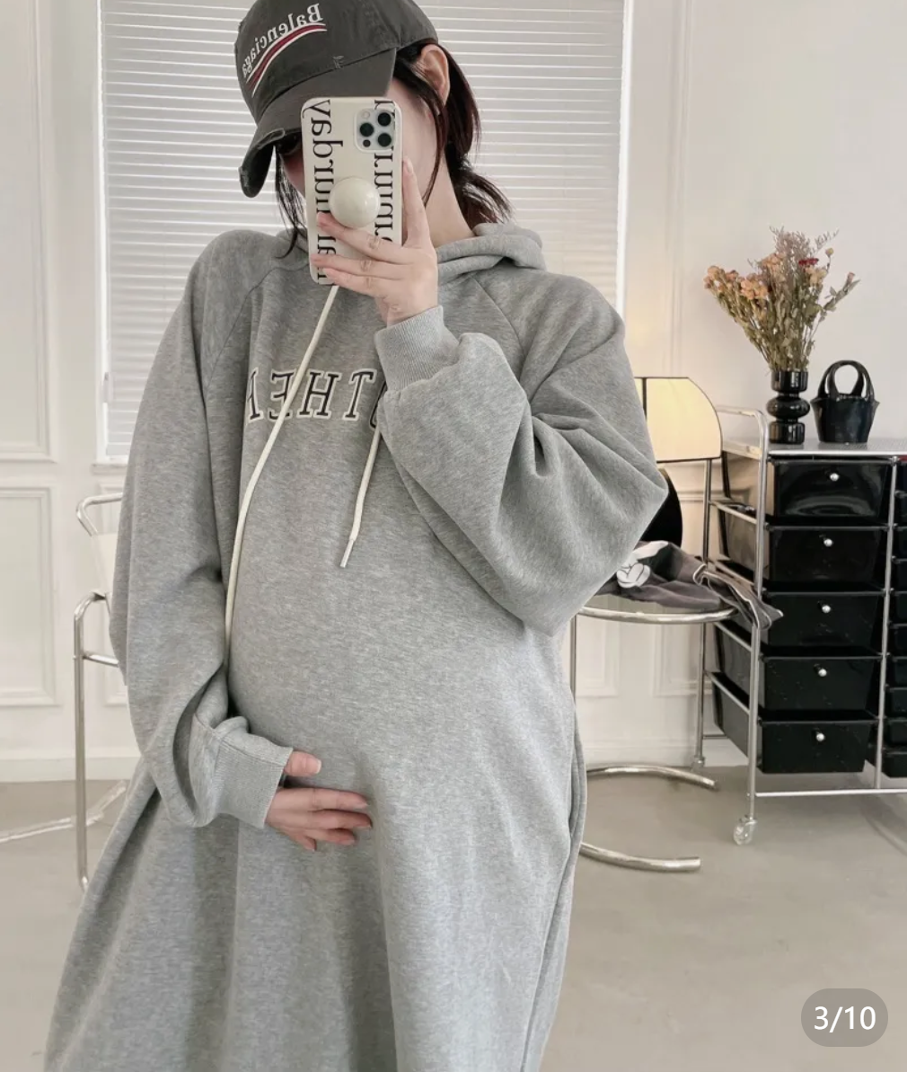 Pregnant woman not even clothed dress for autumn and winter style with cap and clothing female autumn clothes with high sub-winter-beating undershirt length dresses-Taobao