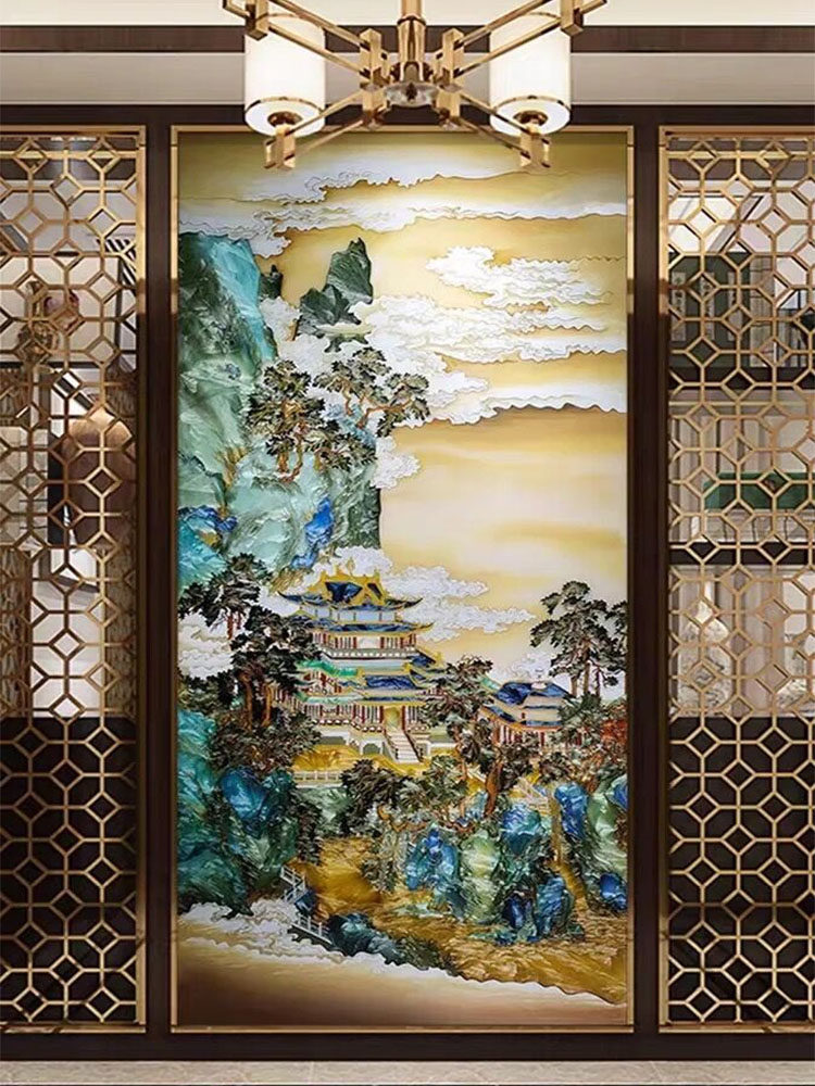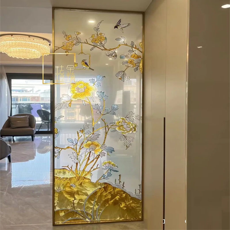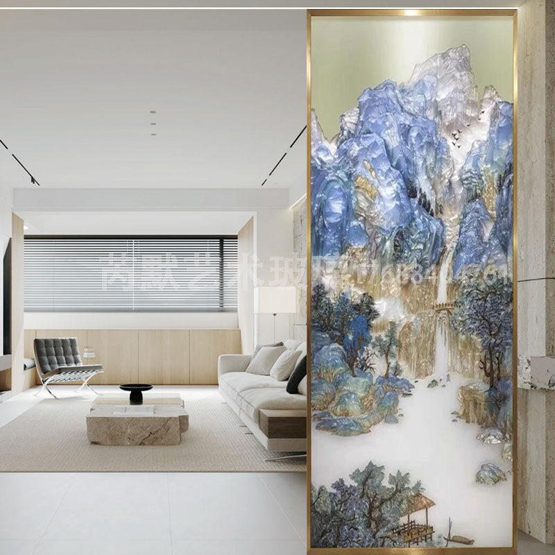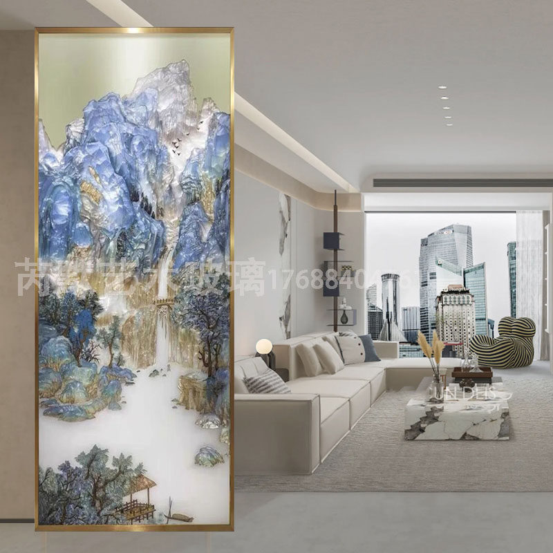 Custom pure hand steel Tempered Art Glass Pinch Enamel Color Painting Screen Wind Partition Living Room Entrance into the family Guan Guan Background Wall-Taobao