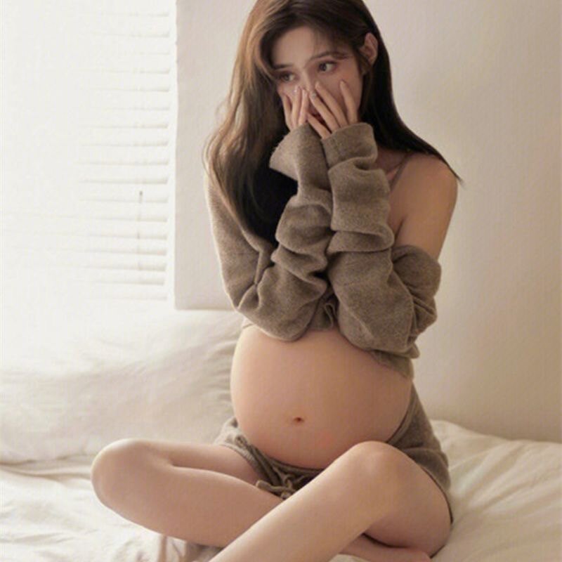 Pregnant woman taking photos of clothing and photo-surrogacy Photopregnancy Big belly Write Genuine Knit Cozy Home Pregnant Woman Photos at Home Photo-Taobao
