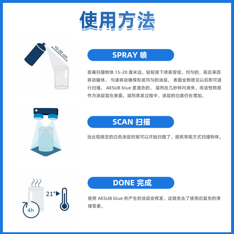 REVOPOINT Know Elephant Optoelectronics AESUB Developer 3D Scanner Developer Free Wash Automatic Volatilization No Pigment Transcript Three-dimensional Scanning Spray Powder Blue-T