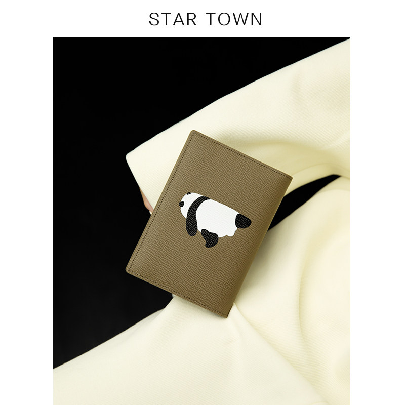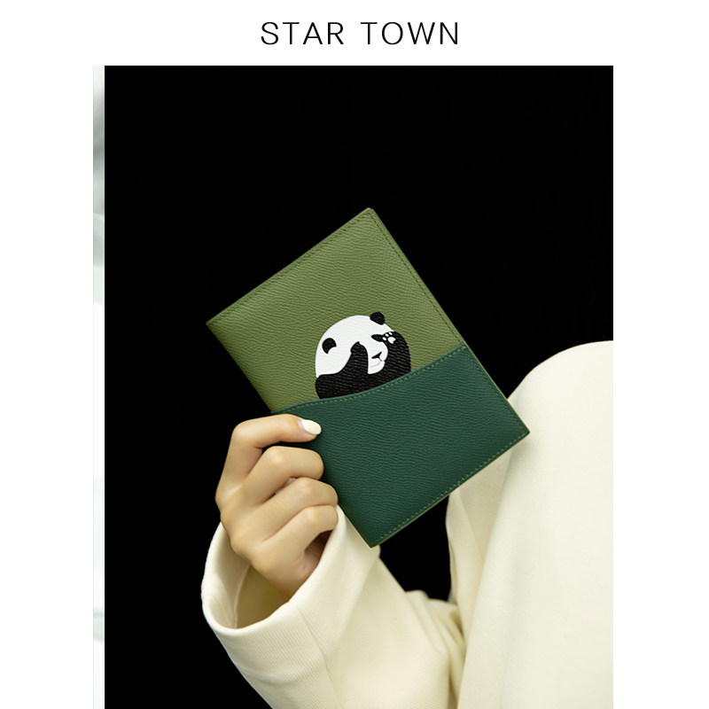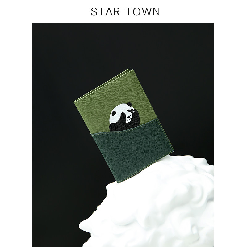 STARTOWN Stars Town Cartoon Panda Travel Passport Clips Multifunction bag Bull Leather Card Bag Credential Package-Taobao