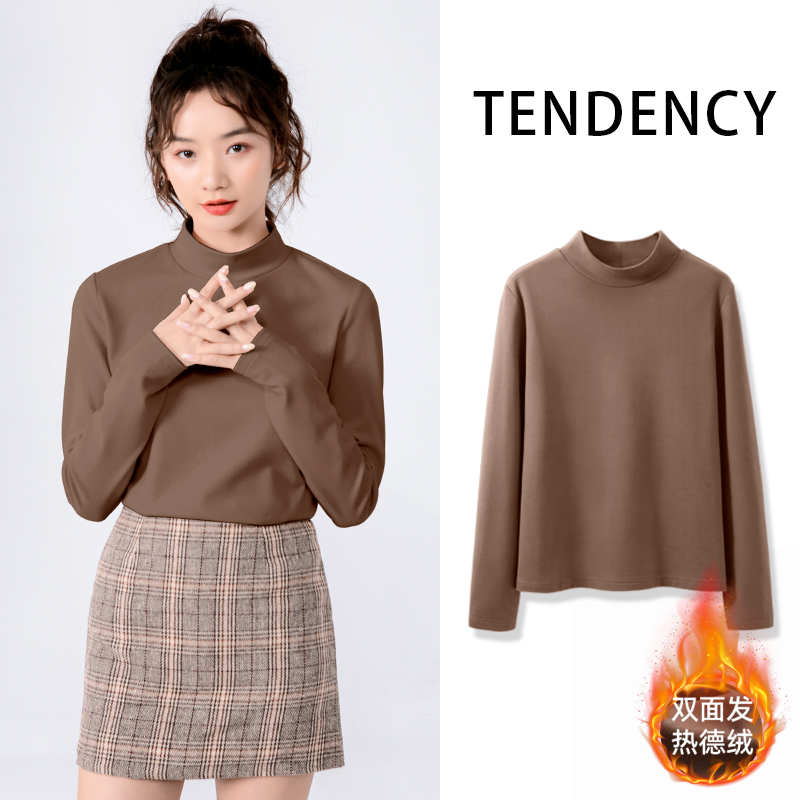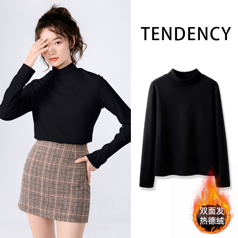 ZR True Wisdersuede beating undershirt woman autumn winter 2023 new half high collar glint with warm and long sleeves-Taobao