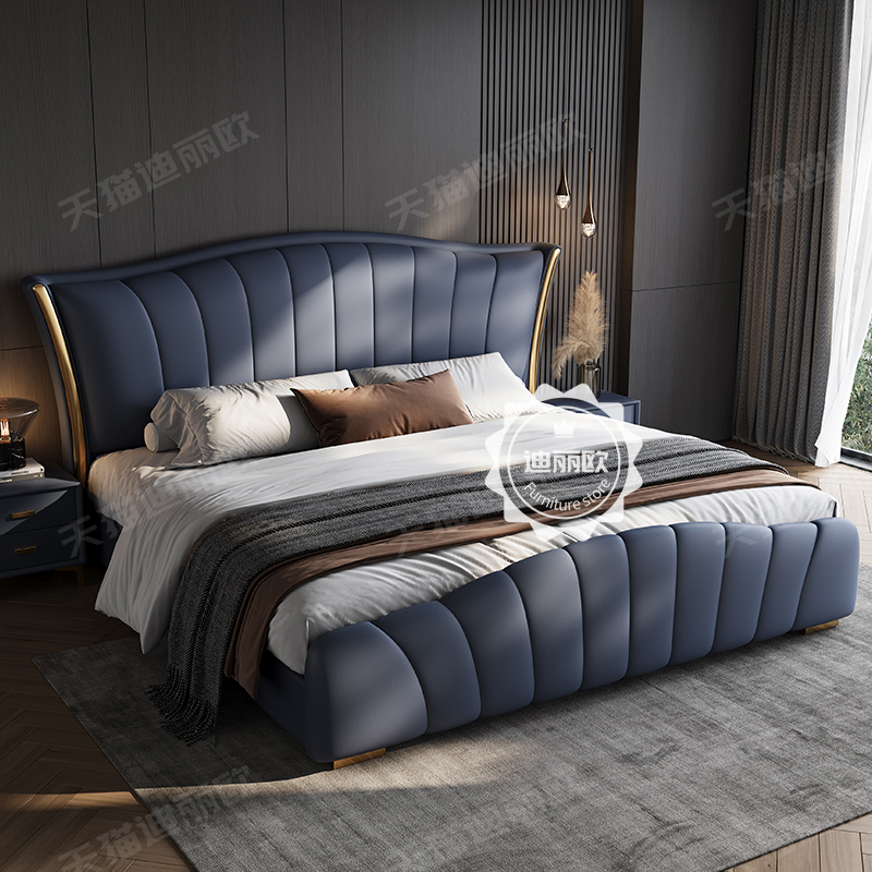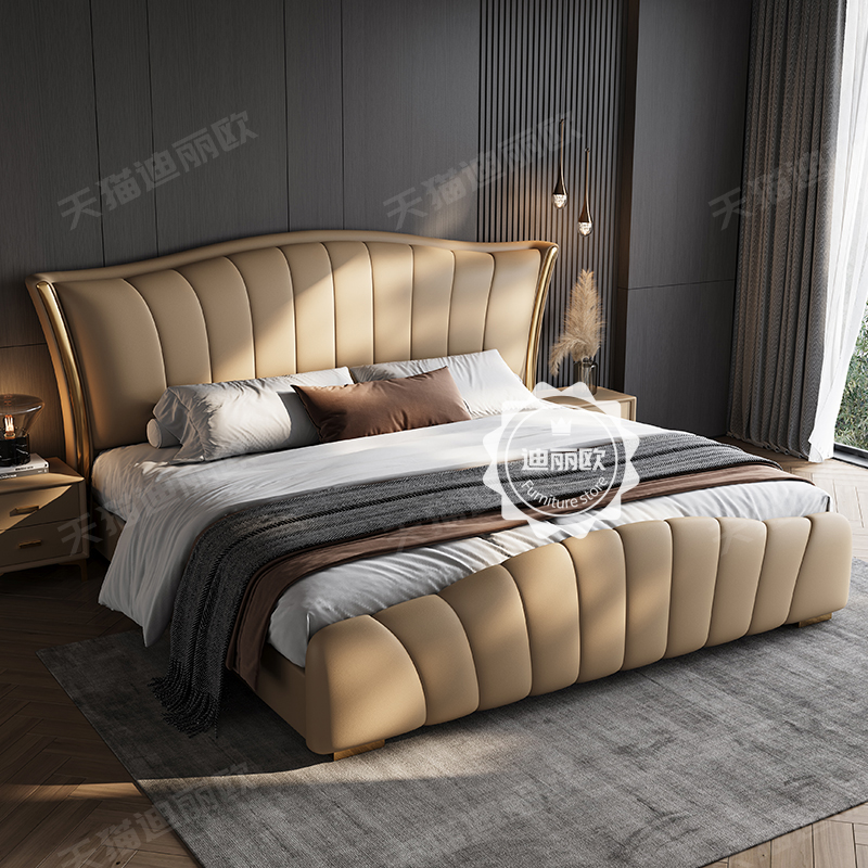 Willy-style light lavish genuine leather bed 1 8 m modern minimalist high-end atmosphere master bedroom with double bed 2 m large bed storage wedding bed-Taobao