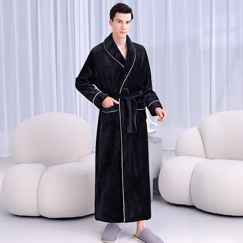 Advanced Sleepwear Male Autumn Winter Flannel Velvet Plus Suede Thickened and lengthened Coral Suede Palate Winter Bathrobe Men's Bathrobe