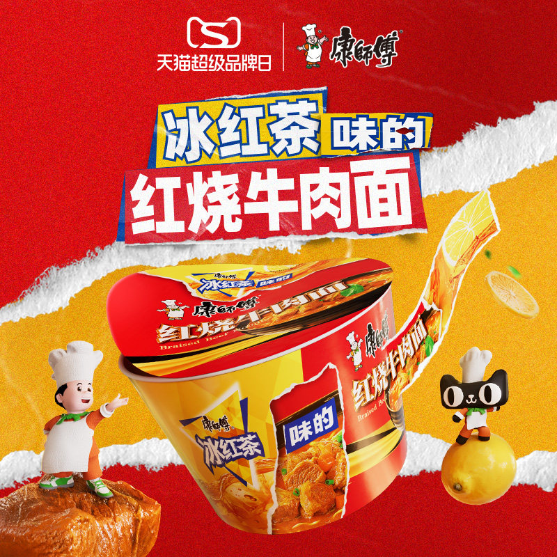 (iced red tea flavored beef noodle) Conmaster's instant noodles Instant Noodle Blind Boxed Ox Tea Noodles Whole Box Flagship Store-Taobao