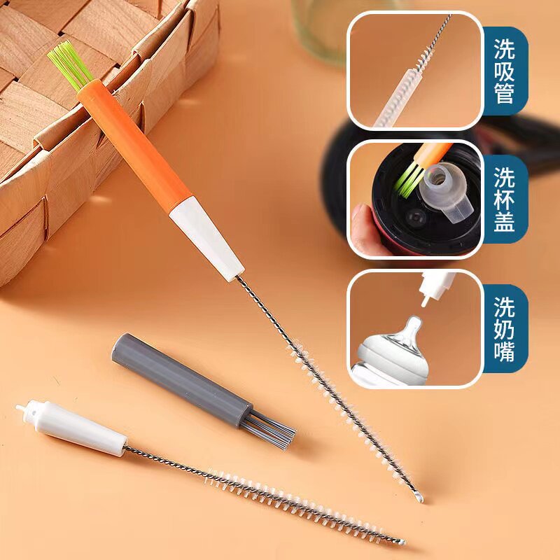 Silicone Milk Bottle Brushed Baby Pacifier Straw Brush Fine Lengthened Clean Brushed Milk Bottle Suit Long Hairbrush Slit Brush-Taobao