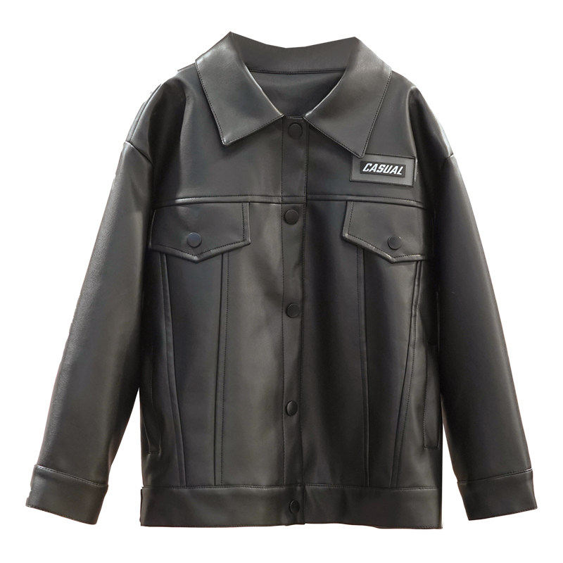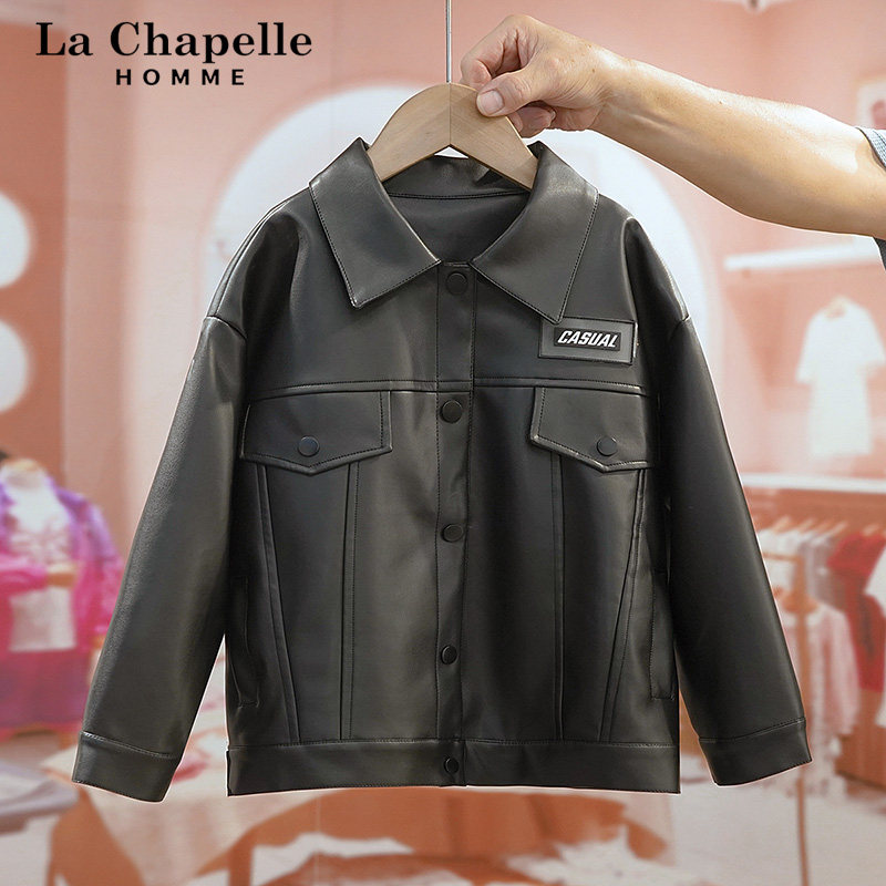 Lashabelle Children's Clothing Girl Fall Back Embroidered Leather Jacket 2023 New Casual Loose Trendy Ocean Gas Tide-Taobao