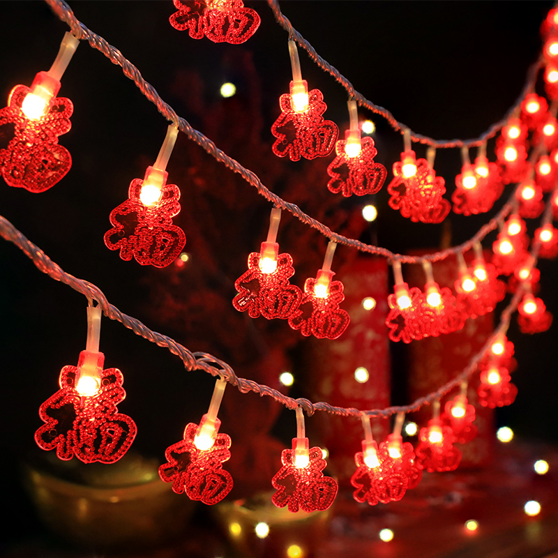 New Year's fu characters Great red lantern led small colorful lights flashing lights Full Star Home New Year Spring Festival Decorative Arrangement-Taobao