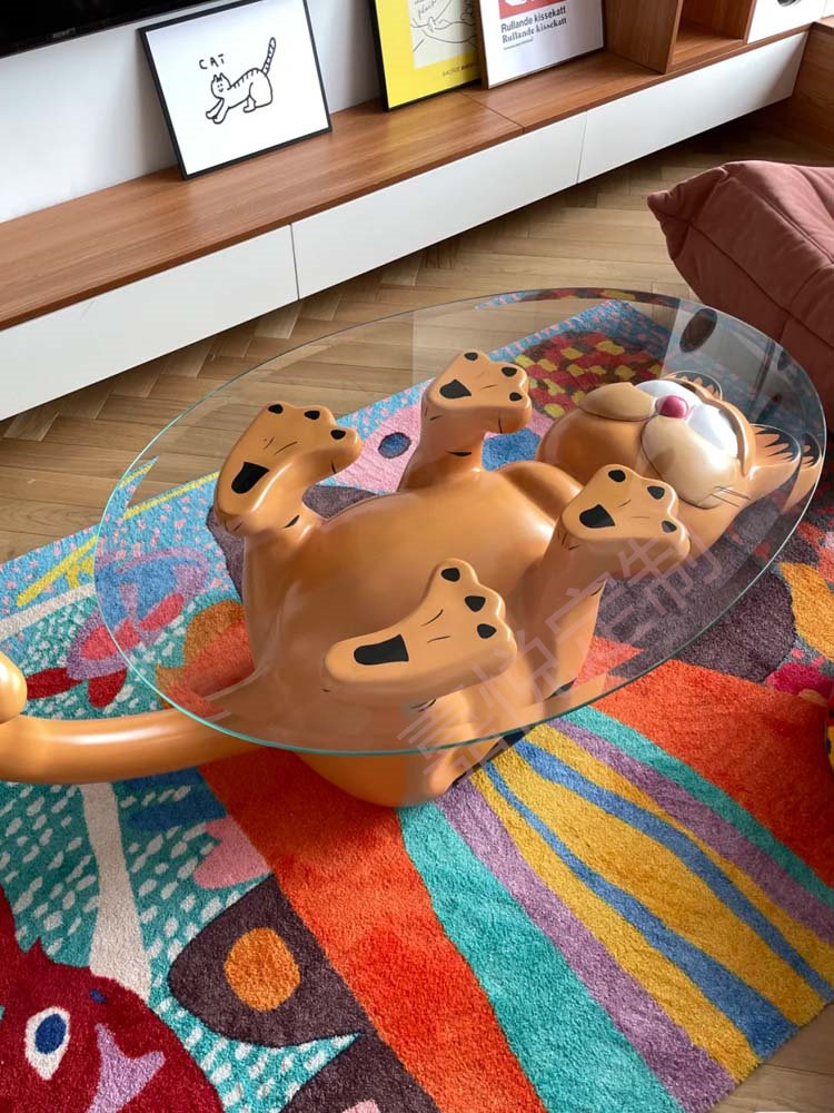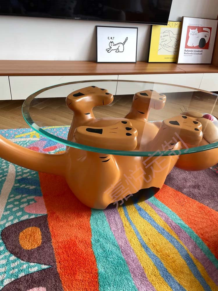 Cute design Profiled Creative Cat Tea Table Tempered Glass Table Several GRP Cartoon Animals Gaffi Cat Tea Table-Taobao