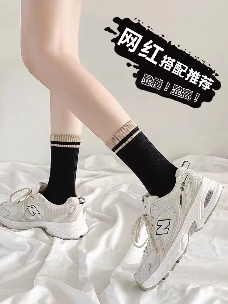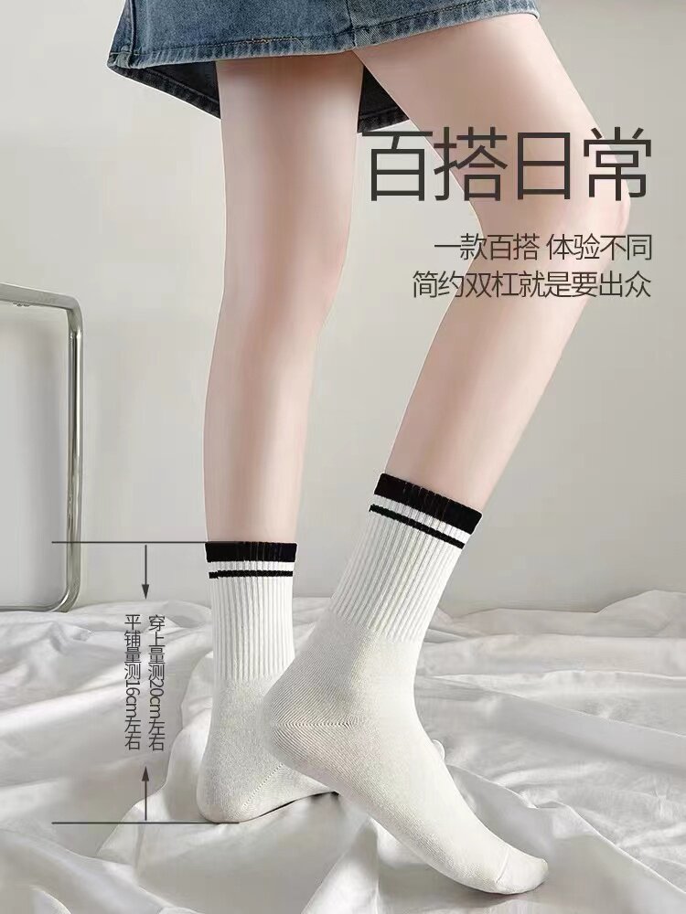 Socks children 100 hitch in spring and autumn in cylinder socks sports fitness JK students suck sweaty stripes black white winter high silo socks-Taobao