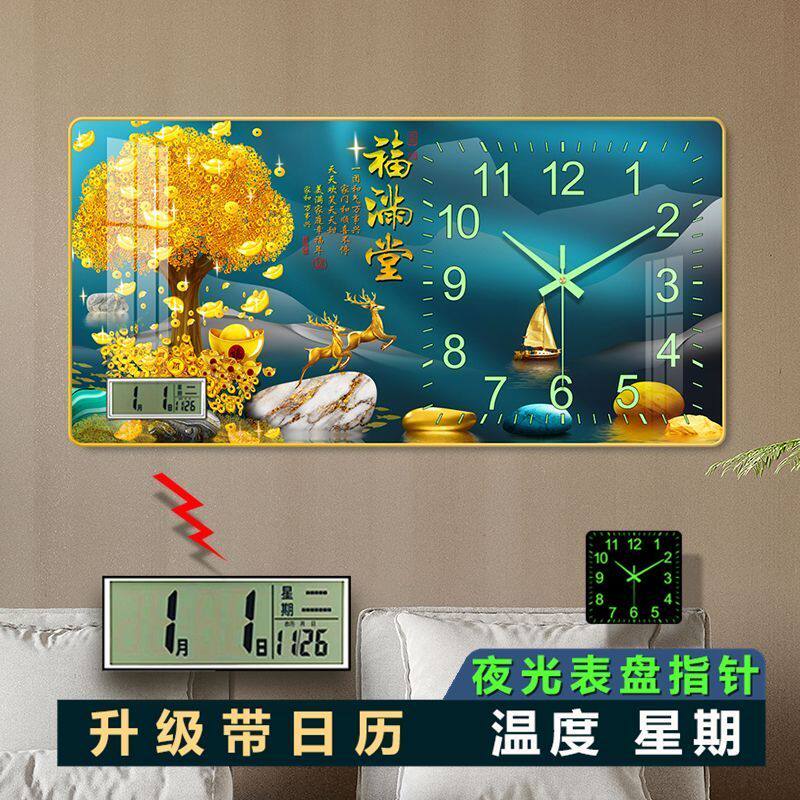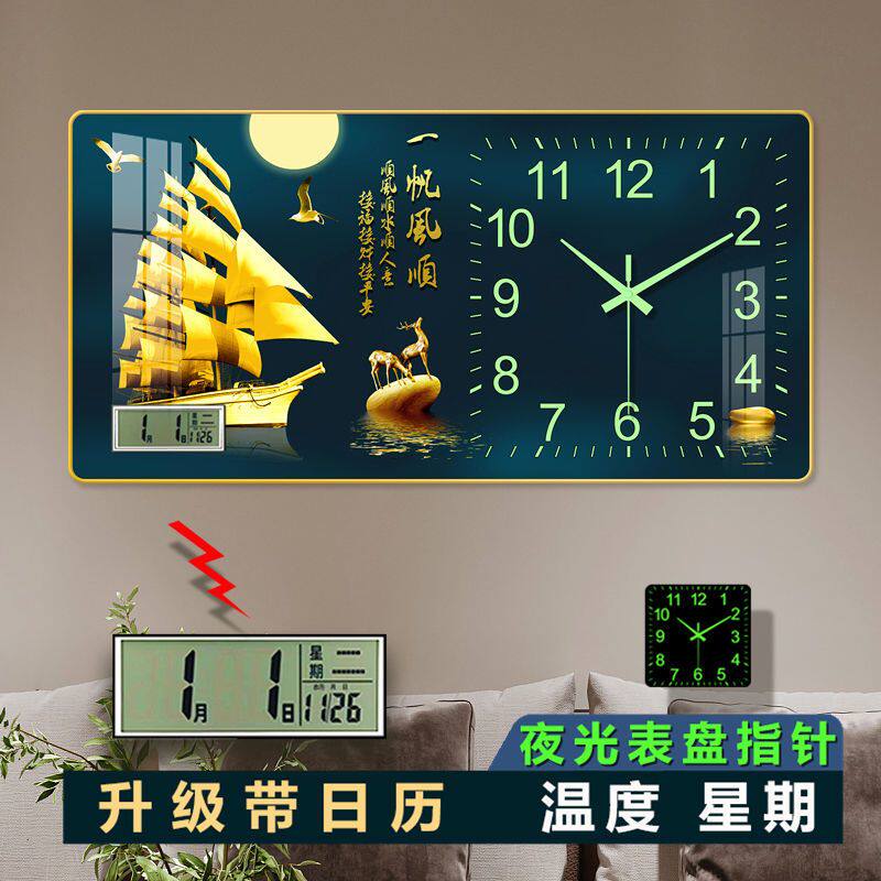 New luminous hanging bell sitting room home living room hanging bell decoration painting with calendar now stands for clock hanging wall free of punch-Taobao