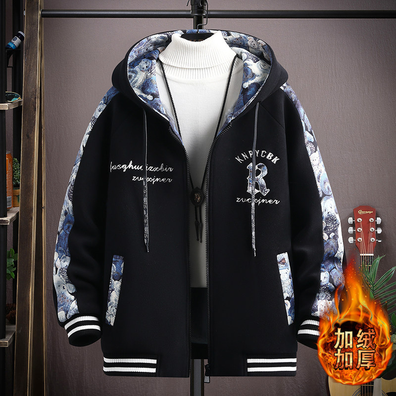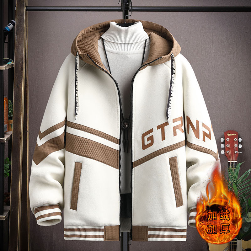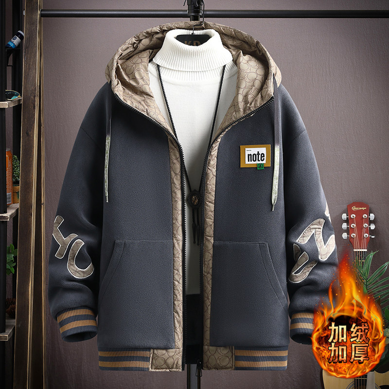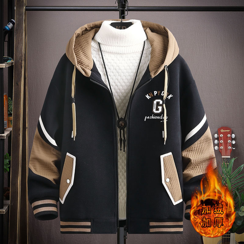 Teen Plus Suede Thickened Jacket Men Junior High School High School Students Baseball Uniform Jacket Handsome big boy autumn winter clothing cotton clothes-Taobao