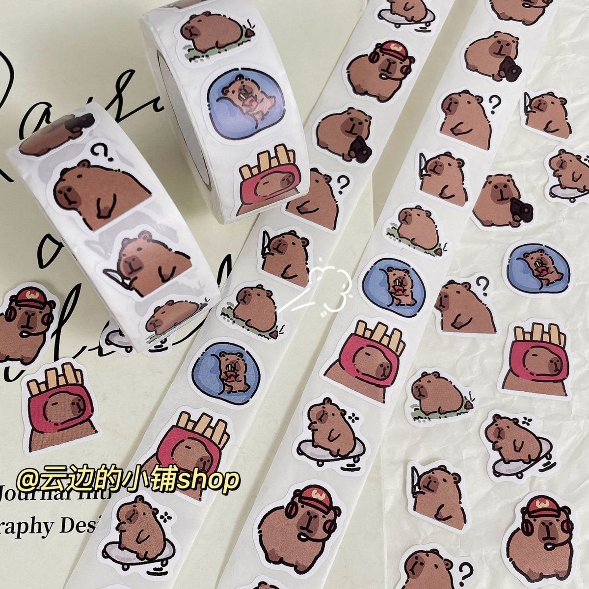 (original) Little Red Book of the same Lovely Capibala Buffy Rolls Stickers Ins HIGH FACE VALUE ADHESIVE TAPE CLOSURE PATCH DIY STICKER Self-adhesive 500 sticker-Taobao