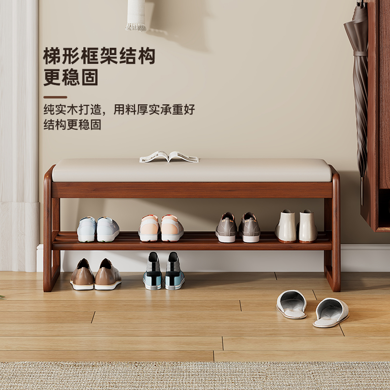 Entrance to the doorway for home wearing a shoe stool can sit in the door stool solid wood shoe cabinet new Chinese shoe rack integrated stool-Taobao