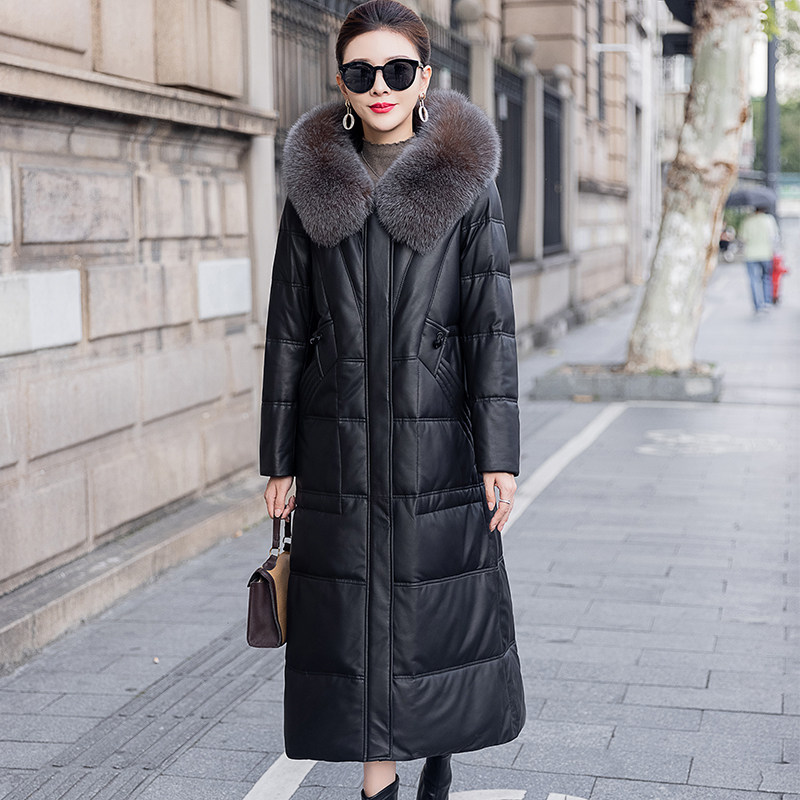 2023 winter new white goose down with knee length Personality Sheep Leather down jacket Thickened Genuine Leather Fur Coat-Taobao