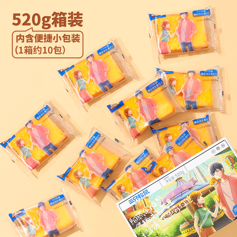 (Three Squirrels _ Thick Rock Creamy Cheese Toast 520g) Breakfast bread snacks a whole box of cake Cake Meal-Taobao